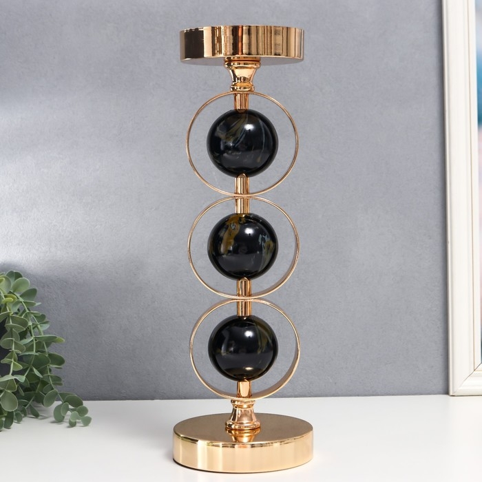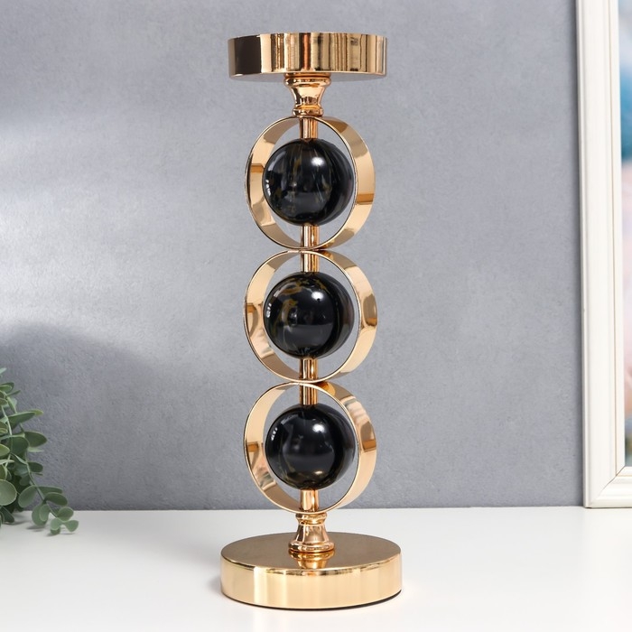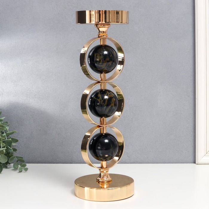 Подсвечник металл на 1 свечу "Три чёрных мраморных шара в сферах" золото 37х12х12 см