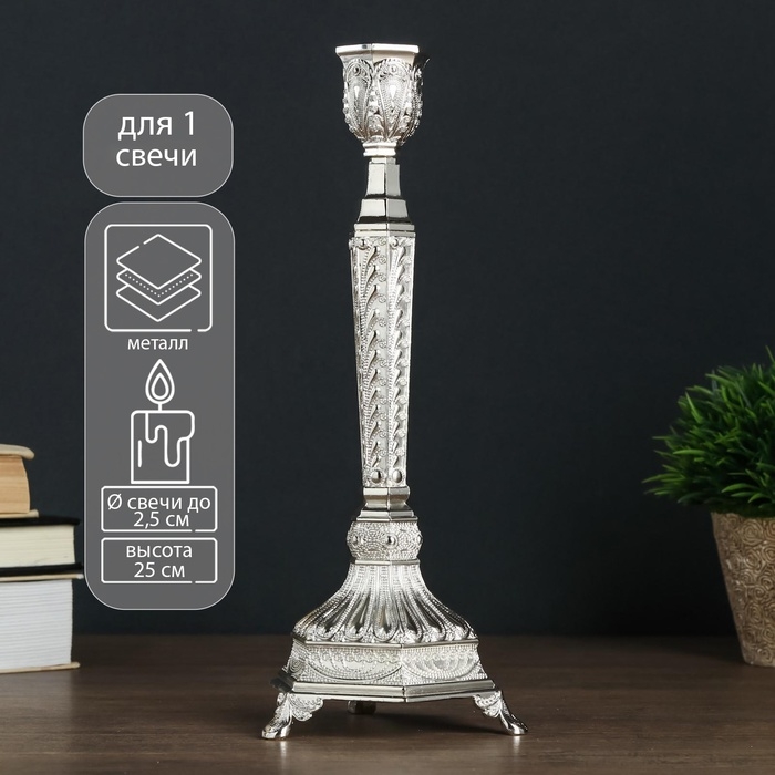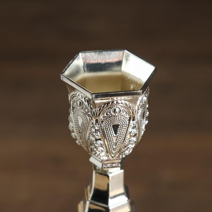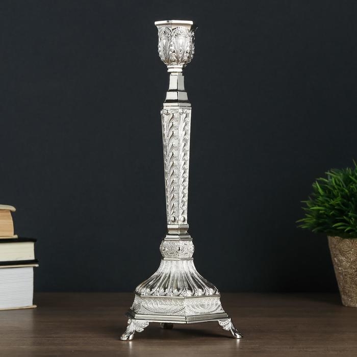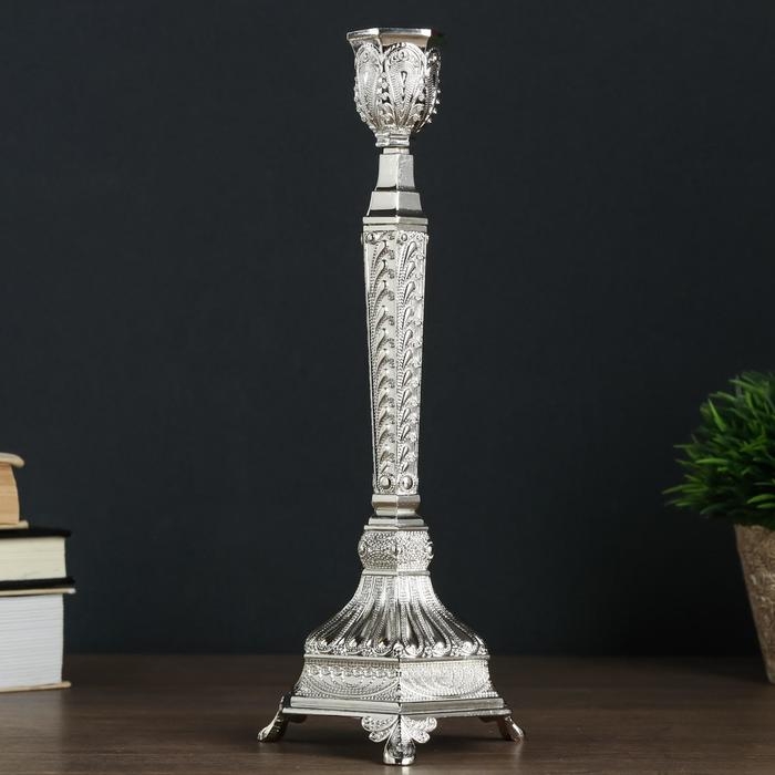 Подсвечник металл на 1 свечу "Узорный" серебро 25х10х9,5 см