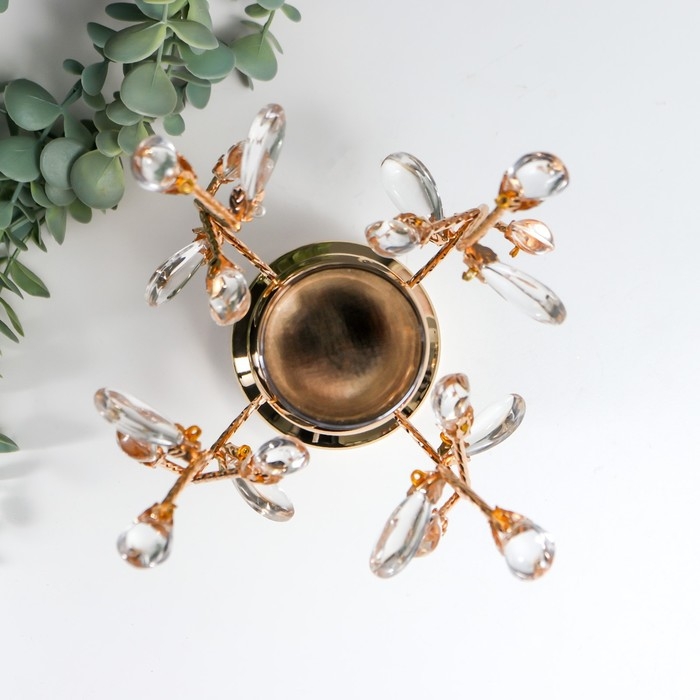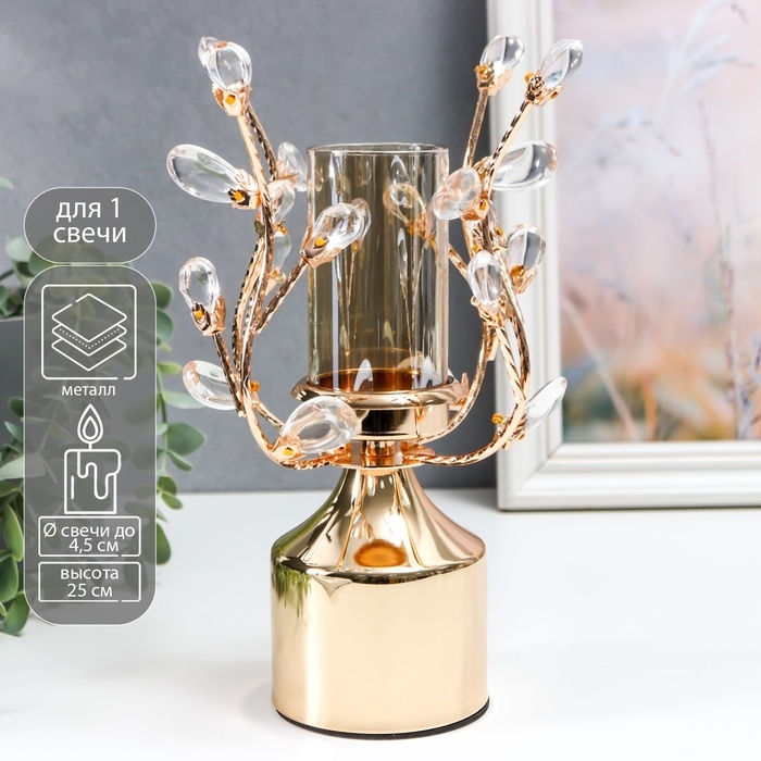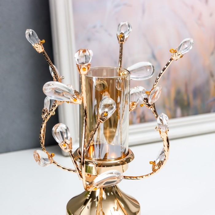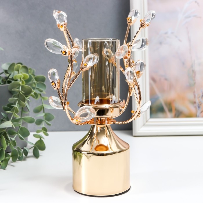 Подсвечник металл на 1 свечу "Веточки с кристаллами. Колонна" золото 25х15х15 см