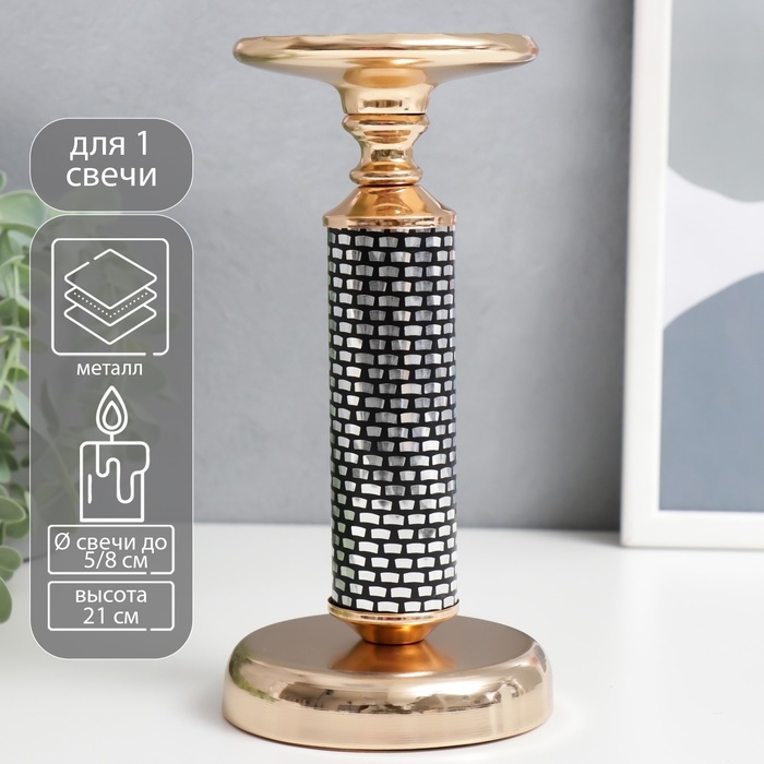 Подсвечник металл на 1 свечу "Зазеркалье" золото 21х10х10 см