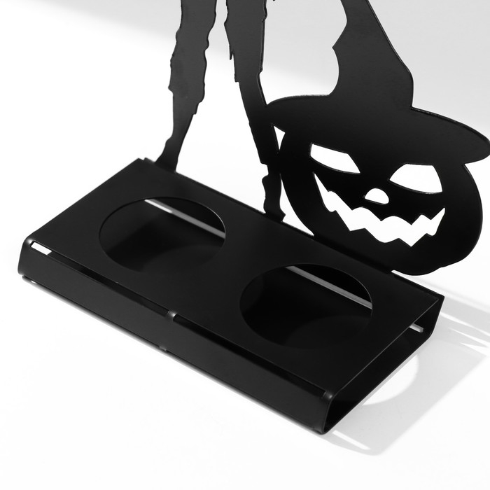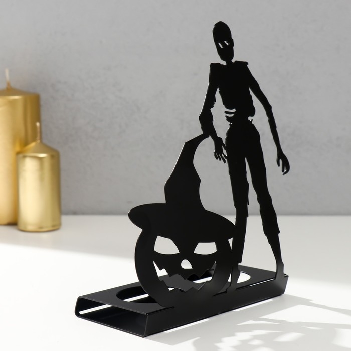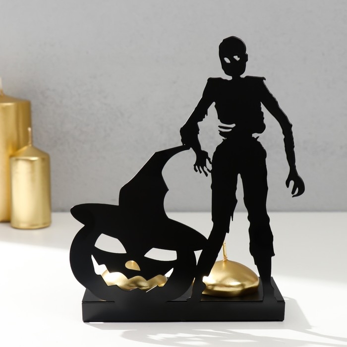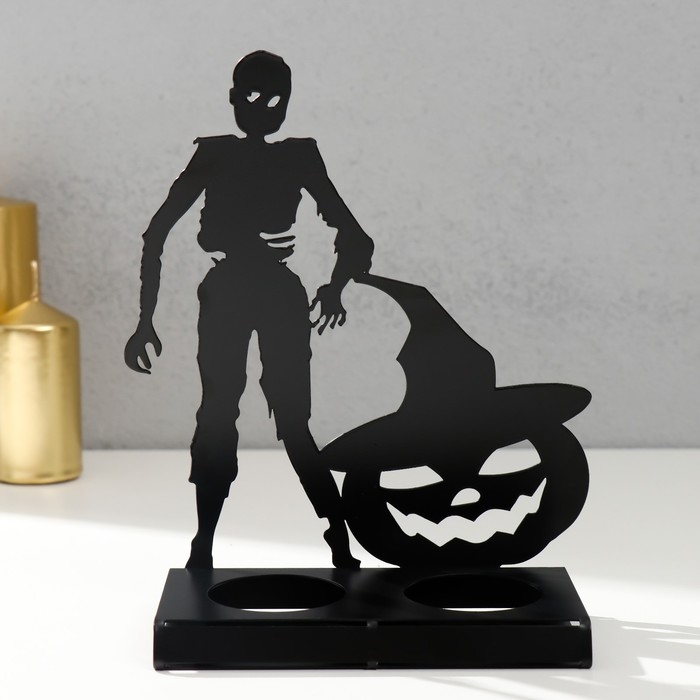 Подсвечник металл на 2 свечи "Хэллоуин. Зомби с тыквой" чёрный 17,5х14х6 см