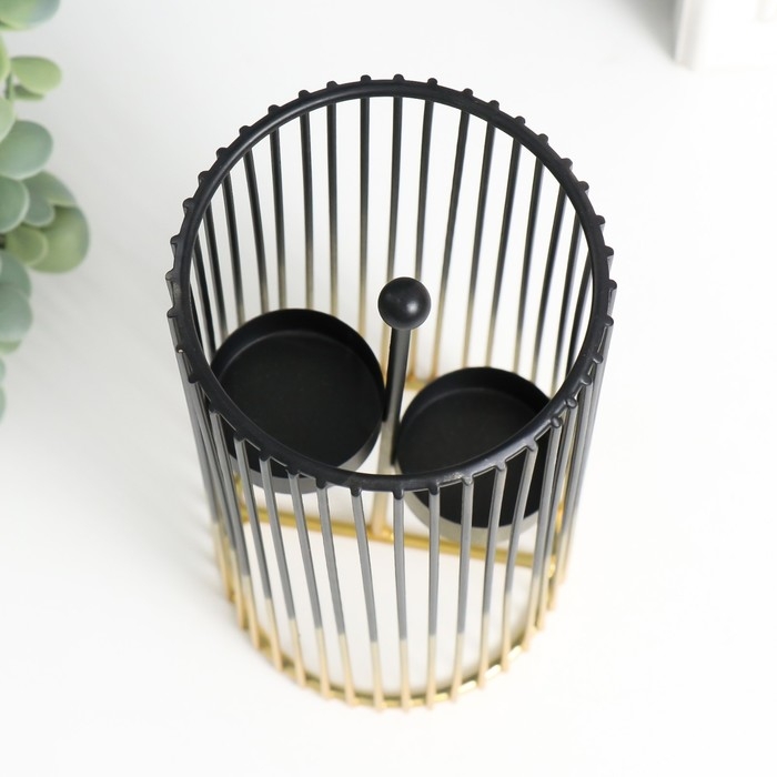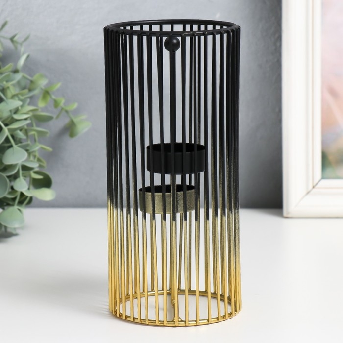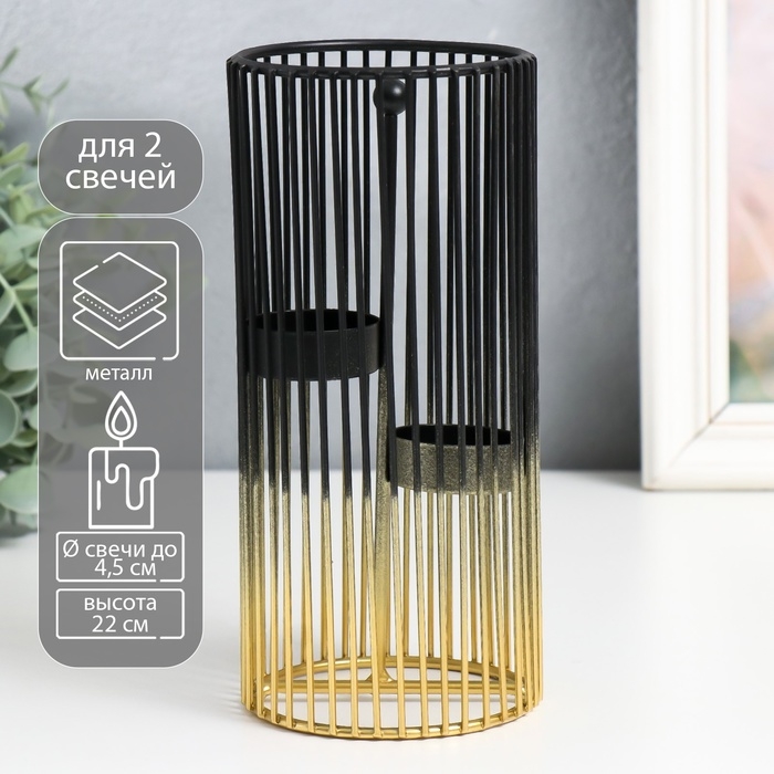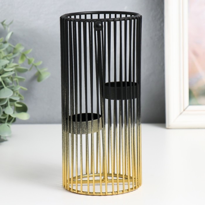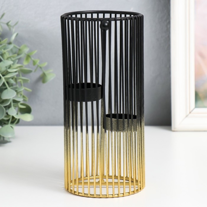 Подсвечник металл на 2 свечи "Круглая клетка" золотисто-чёрный 9,5х9,5х20 см