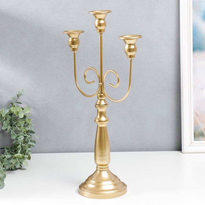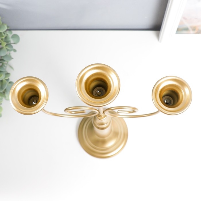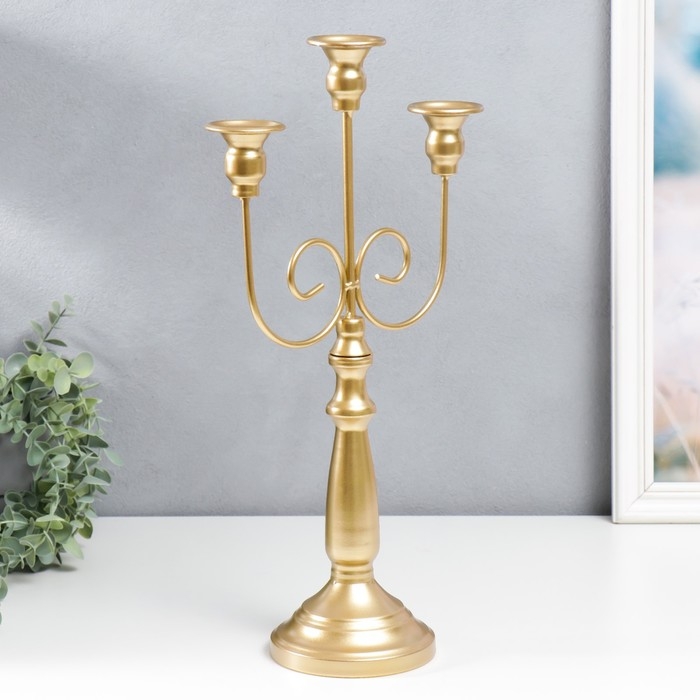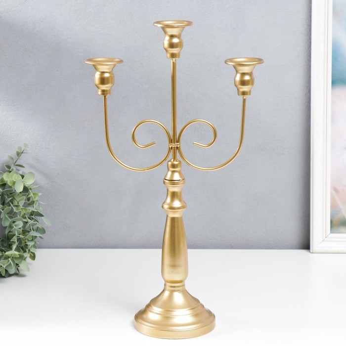 Подсвечник металл на 3 свечи "Канделябр. Завитки" золотой 43х24х11,5 см