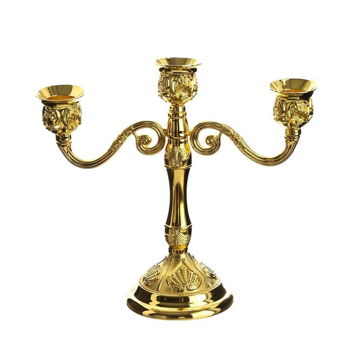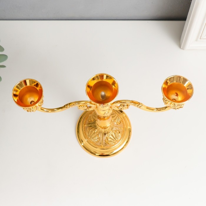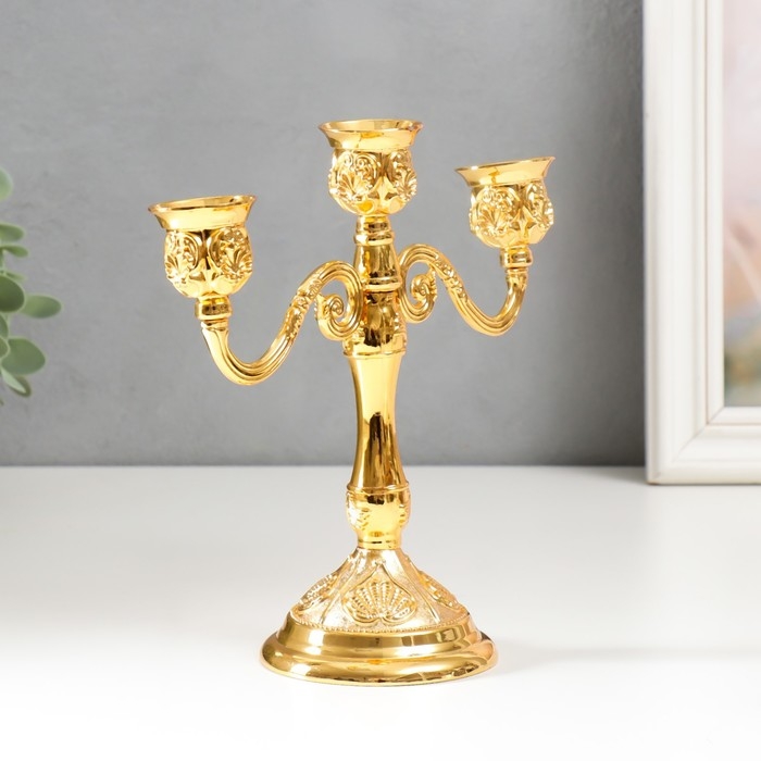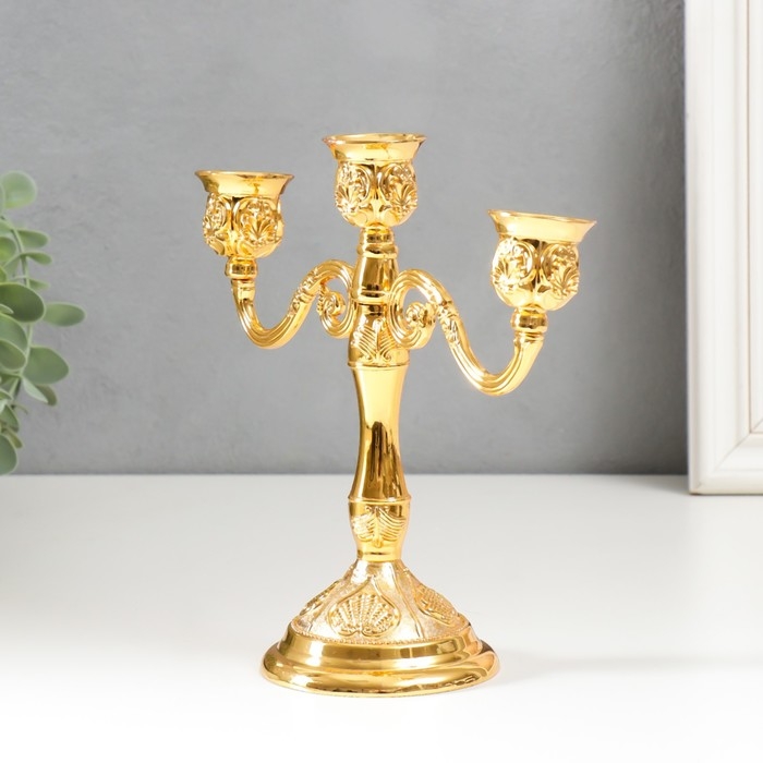Подсвечник металл на 3 свечи "Резной лист" цвет золото 18х20,5х8,5 см