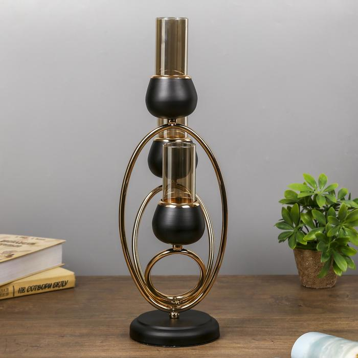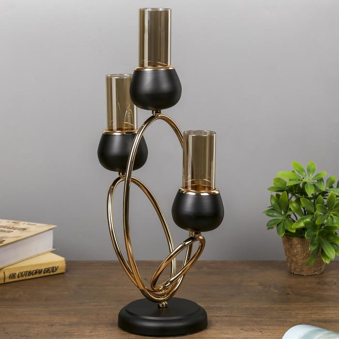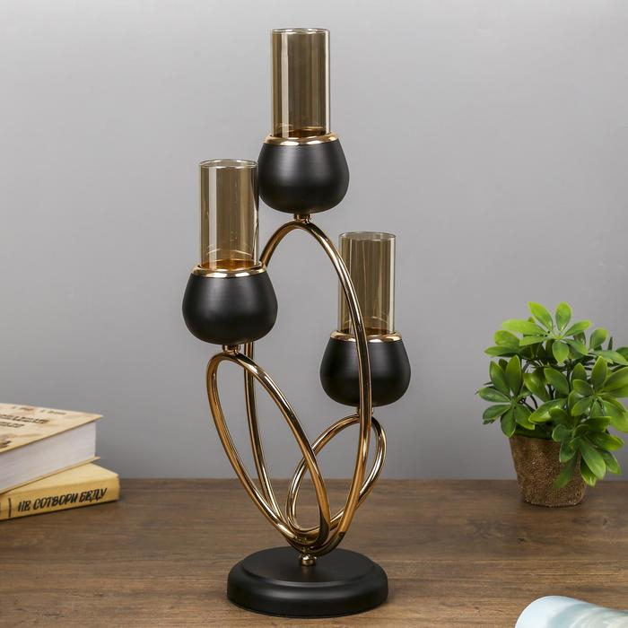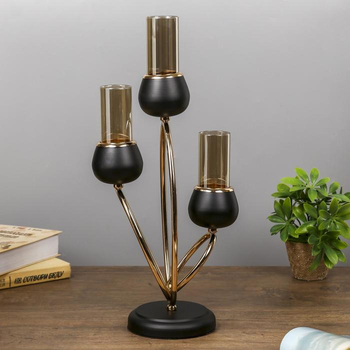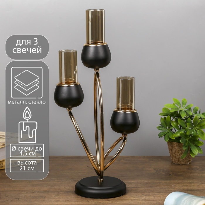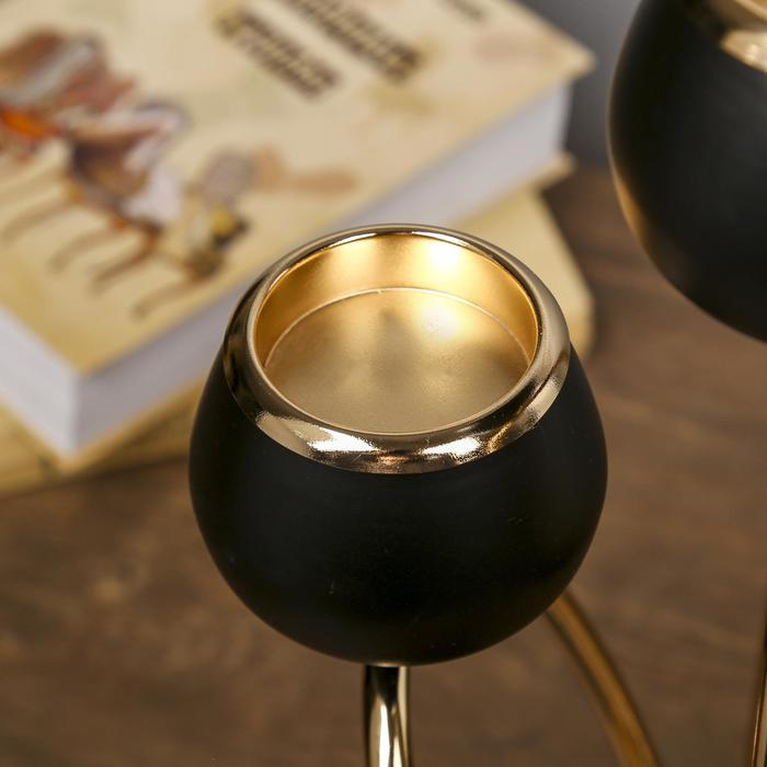 Подсвечник металл на 3 свечи "Тёмный рыцарь" чёрный матовый с золотом 21х38х15 см