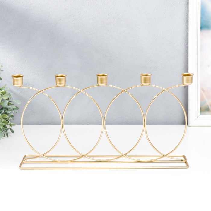 Подсвечник металл на 5 свечей "Окружности" золото 23х43 см