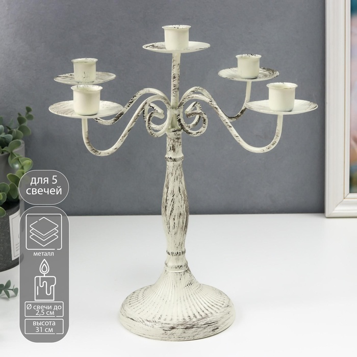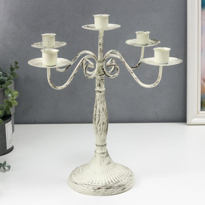 Подсвечник металл на 5 свечей "Прованс" белый состаренный 32х24х24 см
