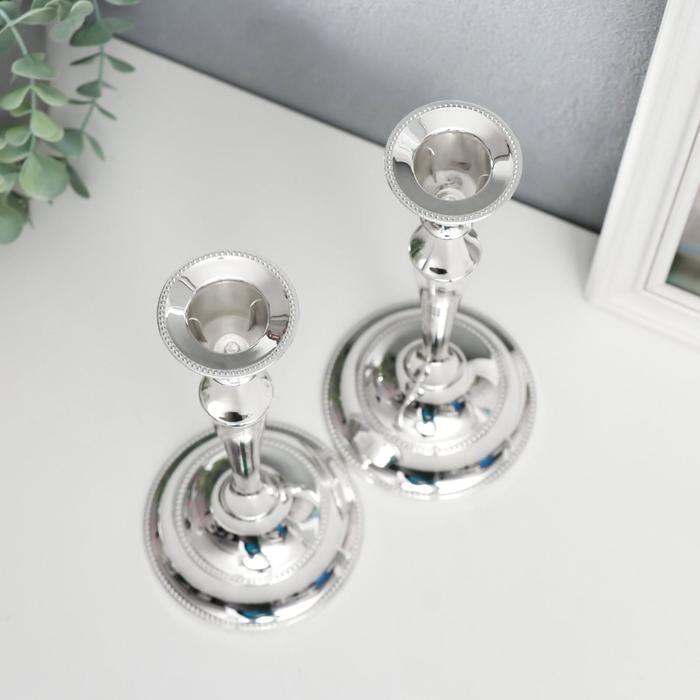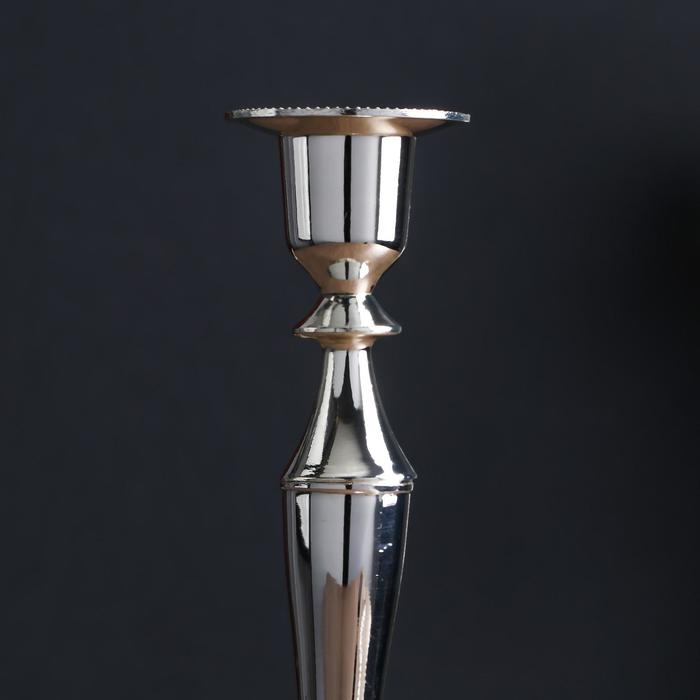 Подсвечник металл "Плавность" серебро набор 2 шт 24х10х10 см