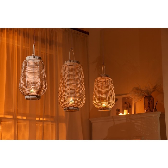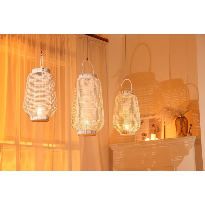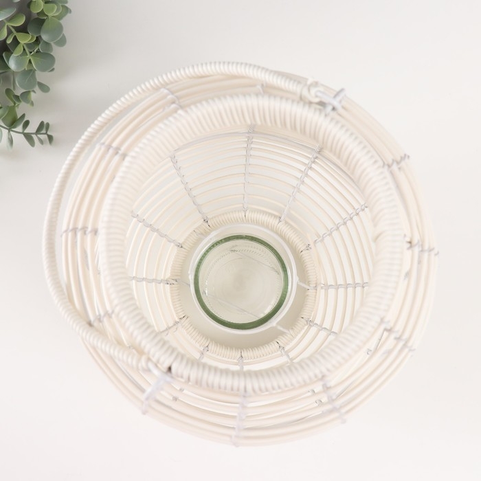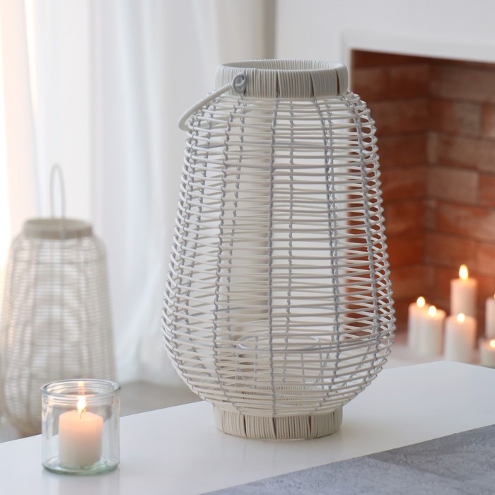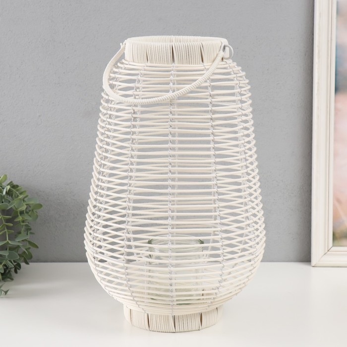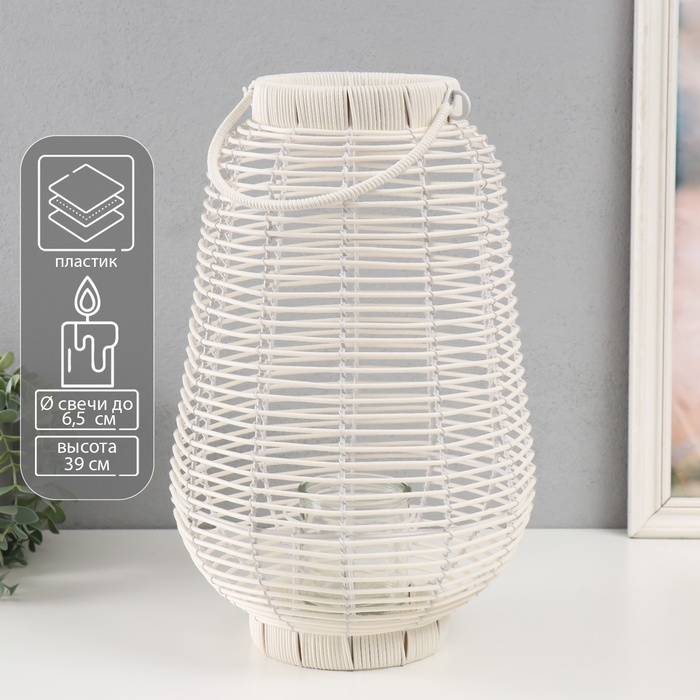 Подсвечник металл, PVC "Фонарик. Плетёнка" белый 39х25х25 см