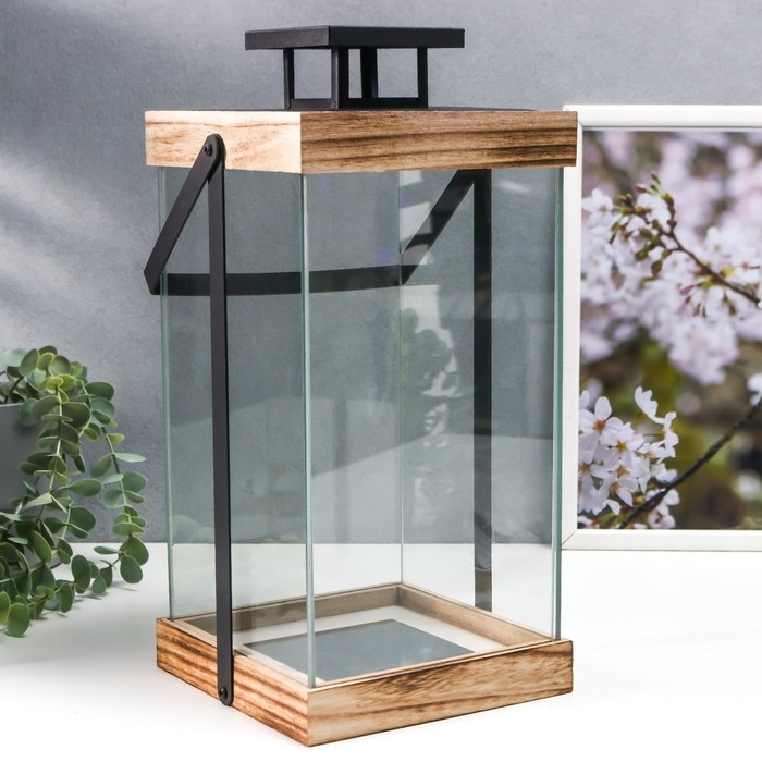 Подсвечник металл, стекло "Эко лайт" 17х17х32см