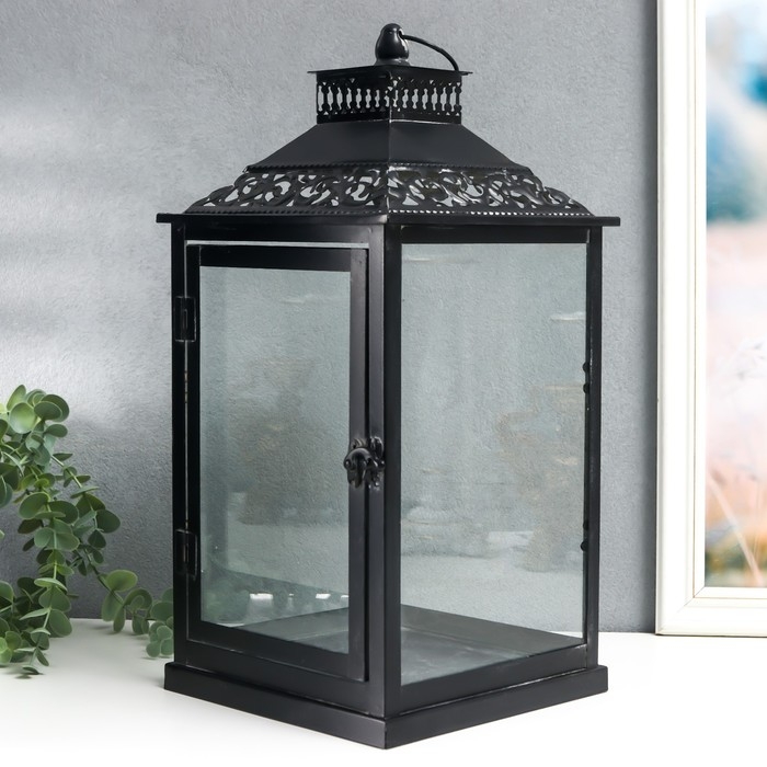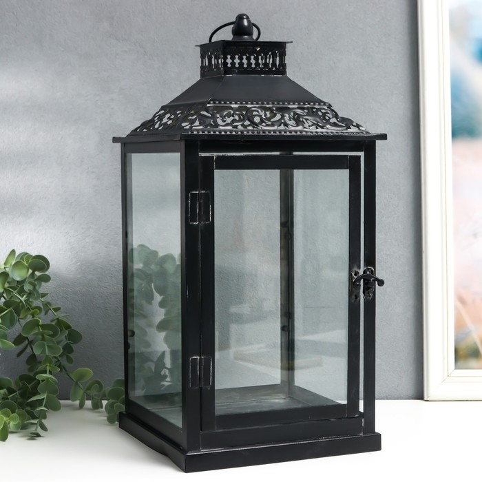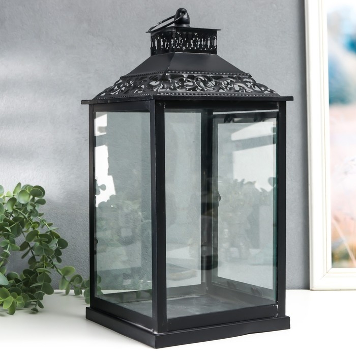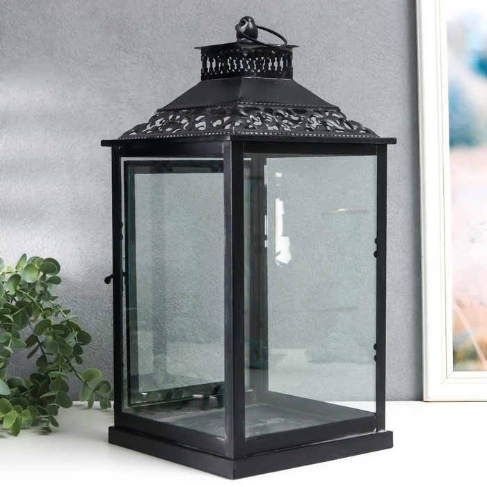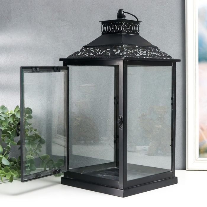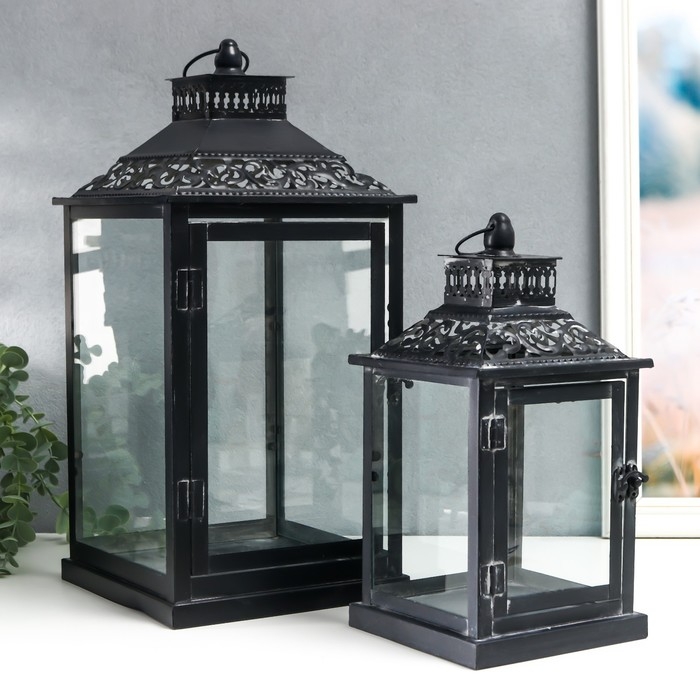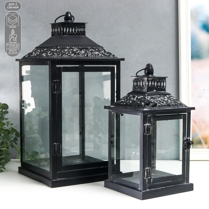 Подсвечник металл, стекло "Этна" чёрный набор 2 шт 19х19х39 см, 14х14х27 см