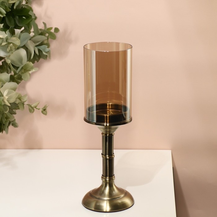 Подсвечник металл, стекло «Князь» на 1 свечу 12,5 х 12, 5 х 36,5 см
