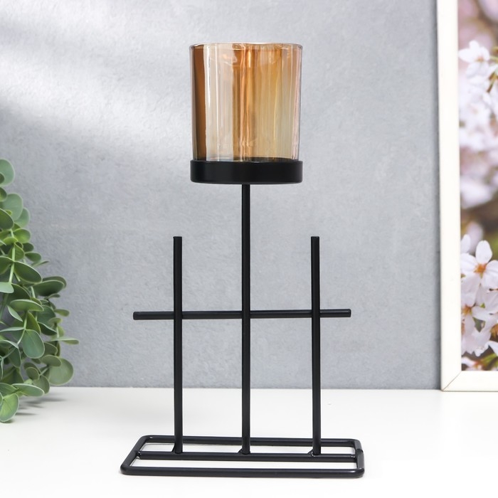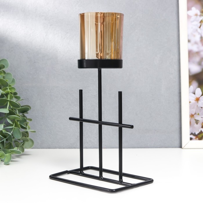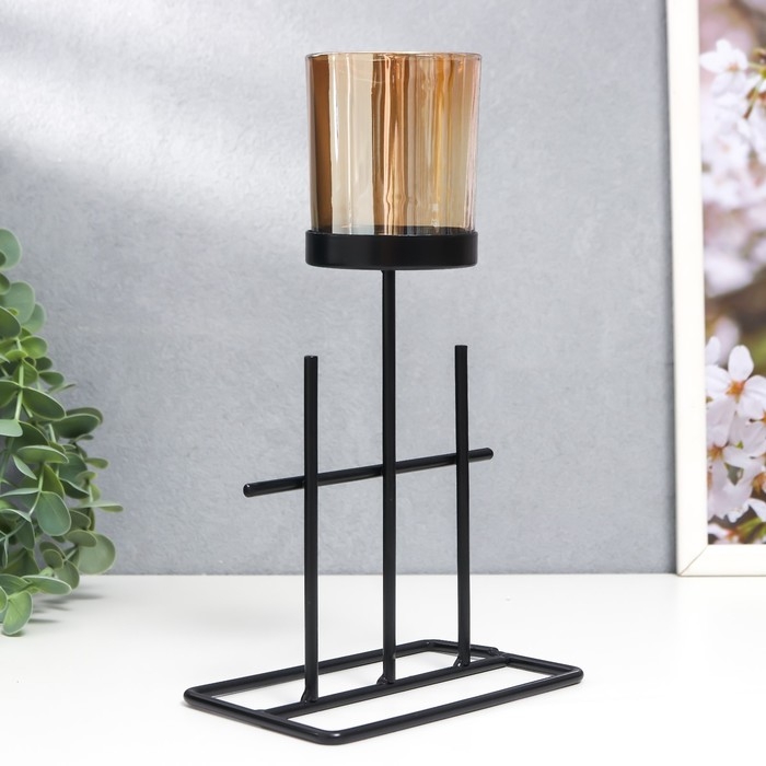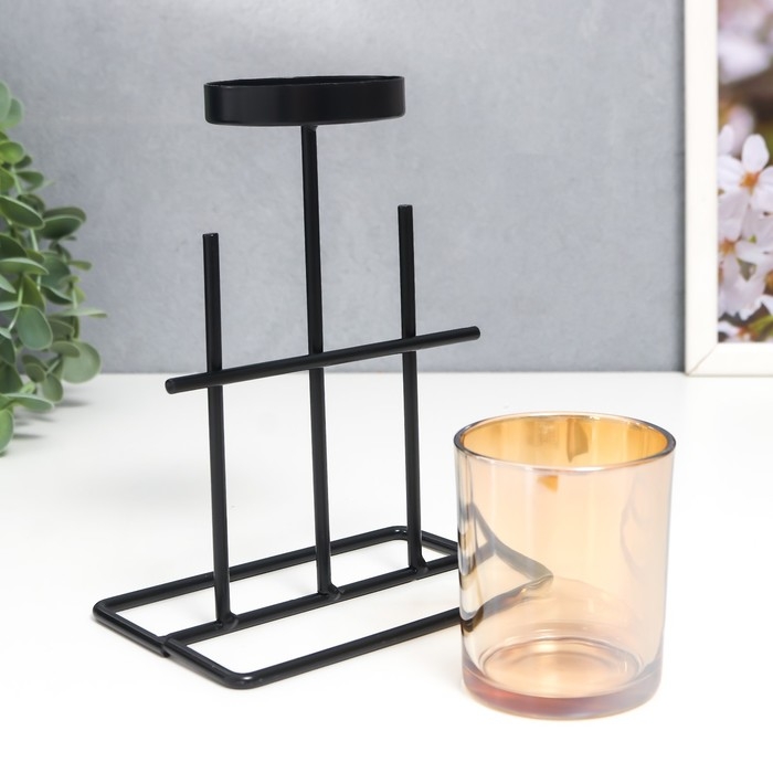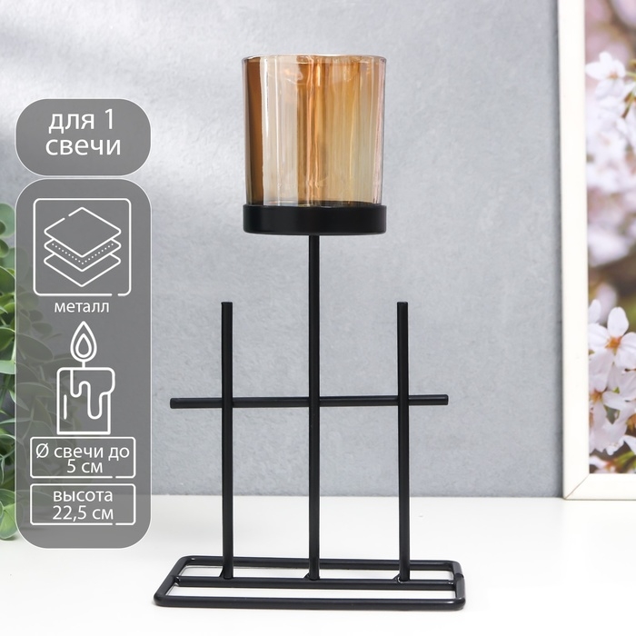 Подсвечник металл, стекло на 1 свечу "Аркана" d-5 см, чёрный 8,4х12,8х22,5 см