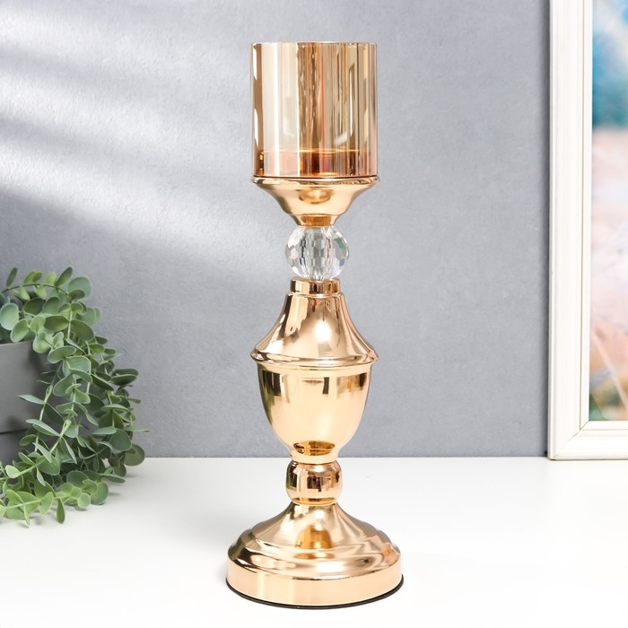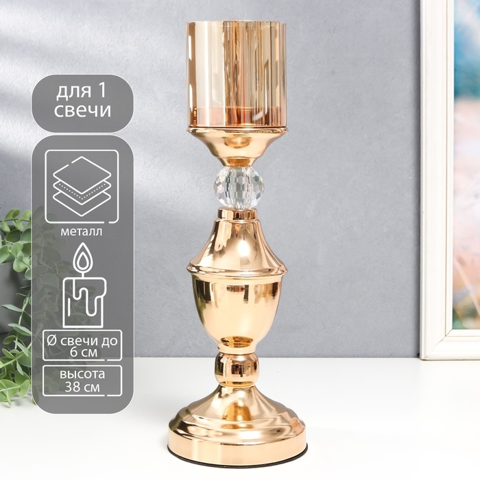 Подсвечник металл, стекло на 1 свечу "Тицино" d-6 см, золото 11,5х11,5х38 см
