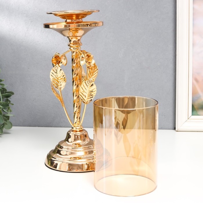 Подсвечник металл, стекло на 1 свечу "Вилас" d-8 см, золото 11,5х11,5х36,5 см