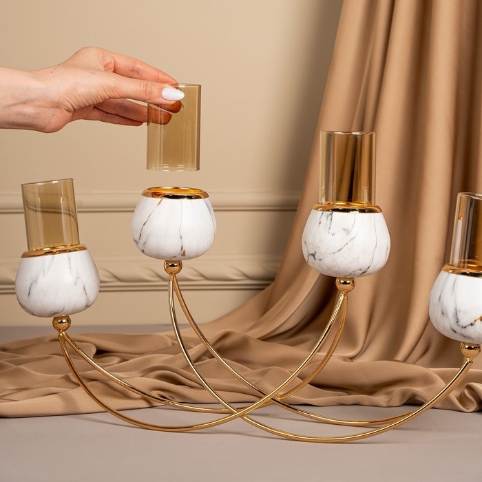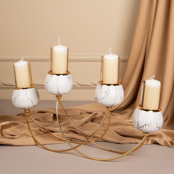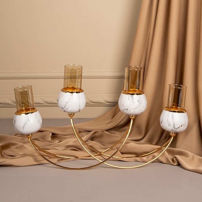 Подсвечник металл, стекло «Сплетение» на 4 свечи 47 х 10 х 28 см