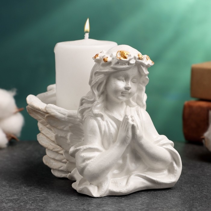 Подсвечник "Молящийся ангел" 10,5х7,5х9см, перламутровый