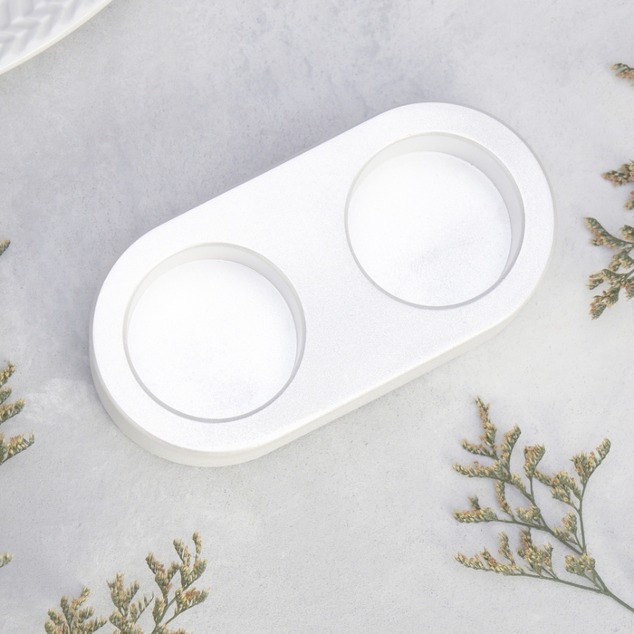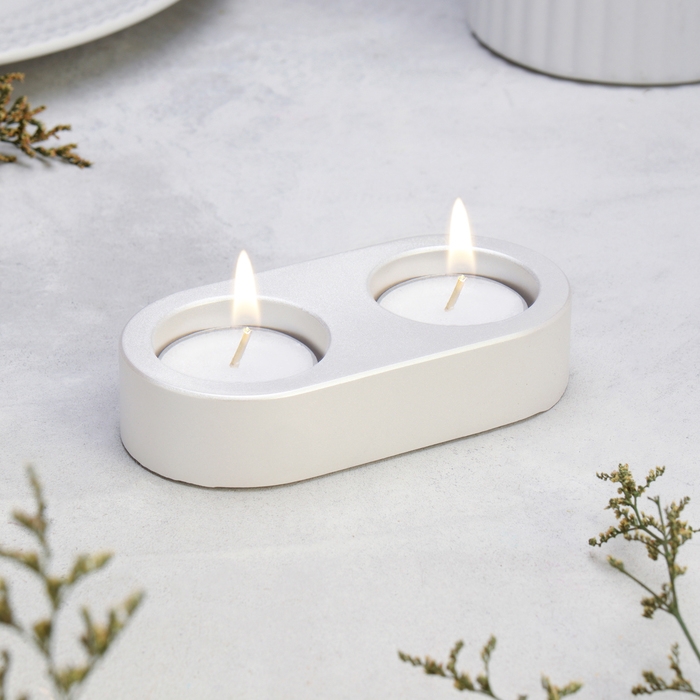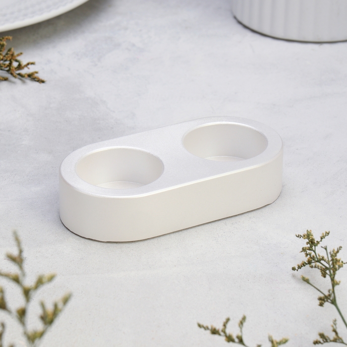 Подсвечник "Мрамор" из гипса для двух свечей овальный, 12х6х3см,белый перламутр