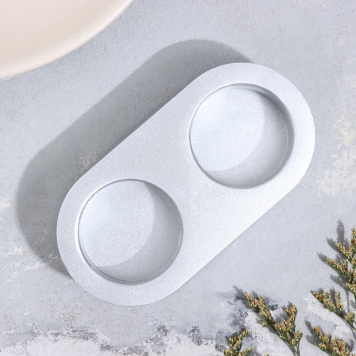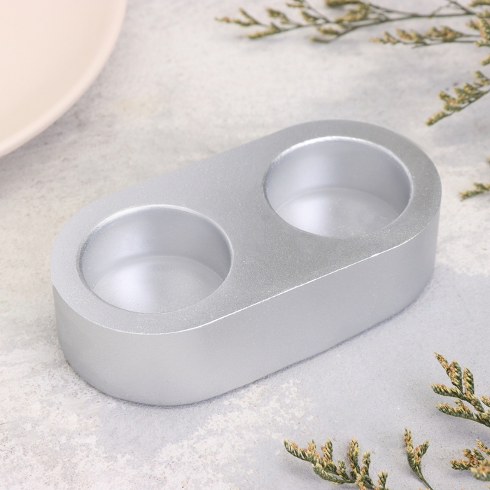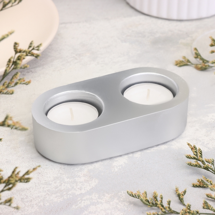 Подсвечник "Мрамор" из гипса для двух свечей овальный, 12х6х3см, серебро