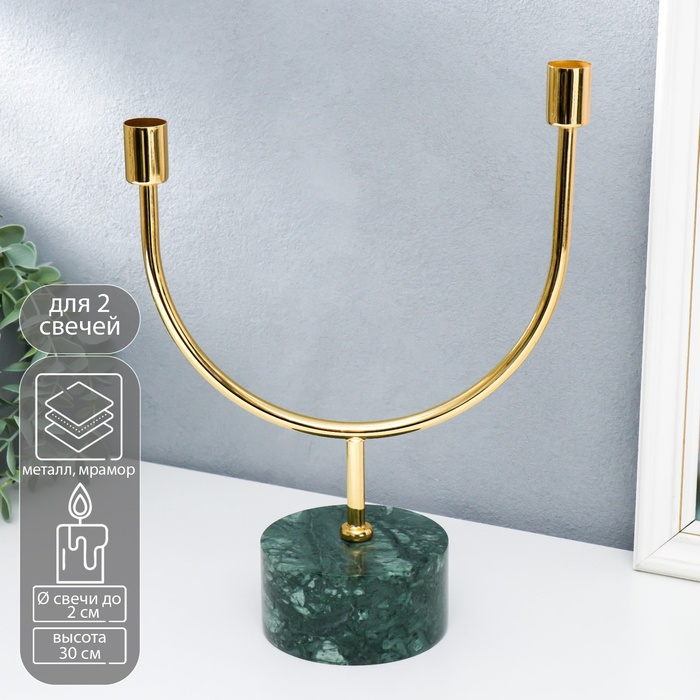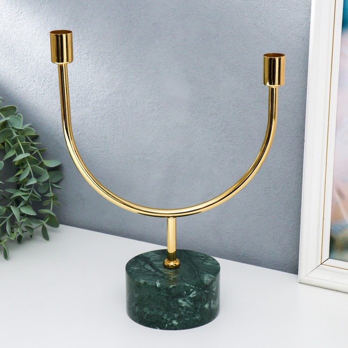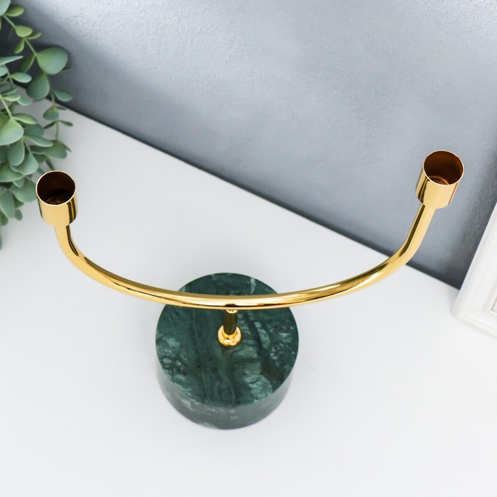 Подсвечник мрамор, металл на 2 свечи "Малахит. Изгибы" 30х23 см