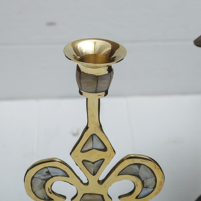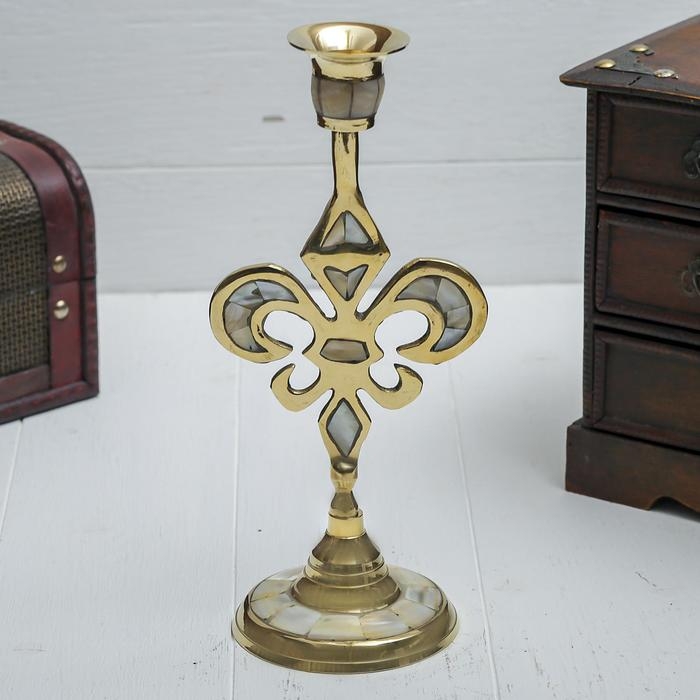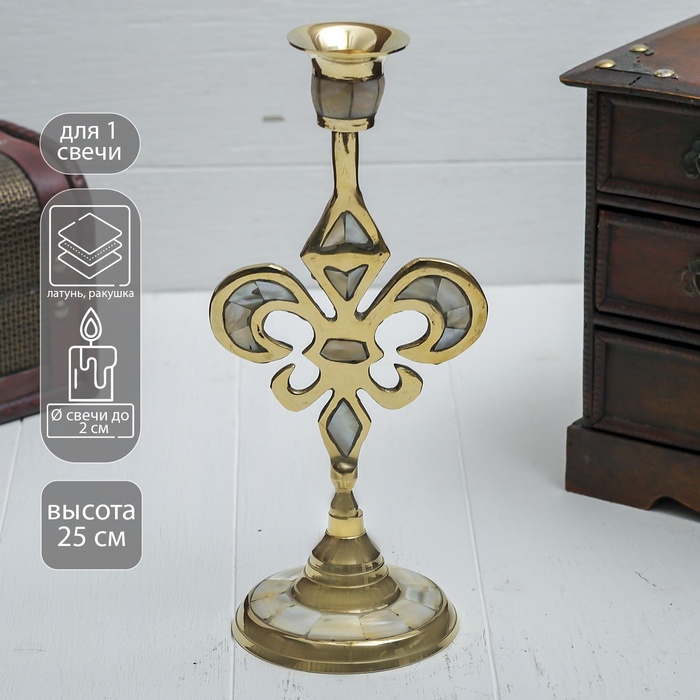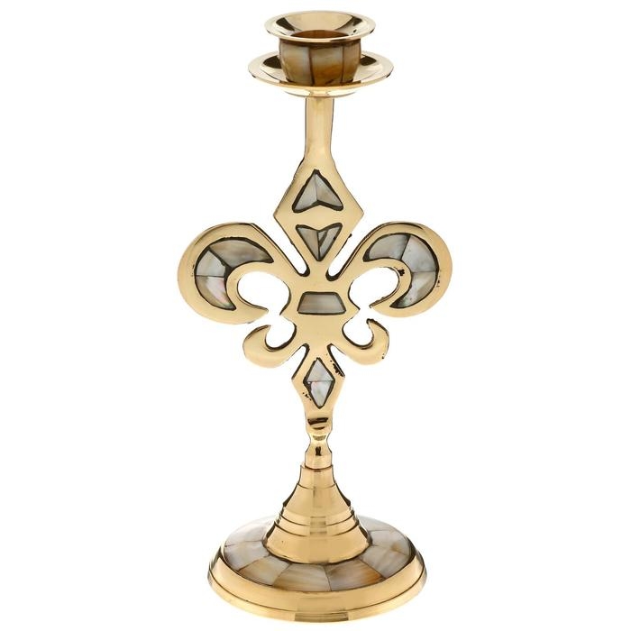 Подсвечник на 1 свечу "Вензель" с перламутром 23 см