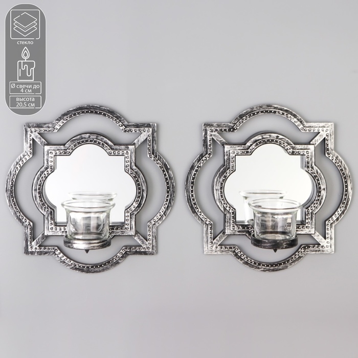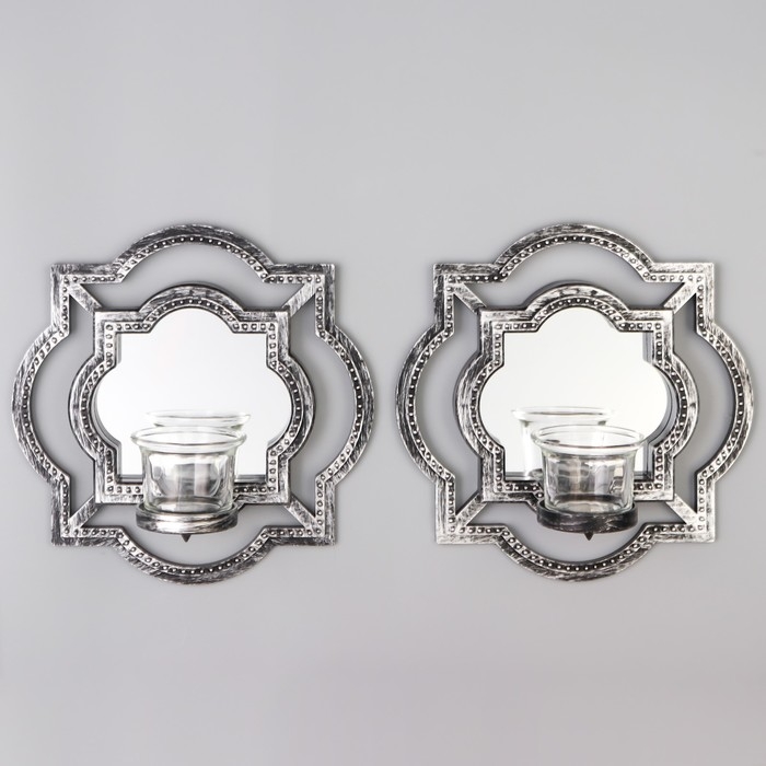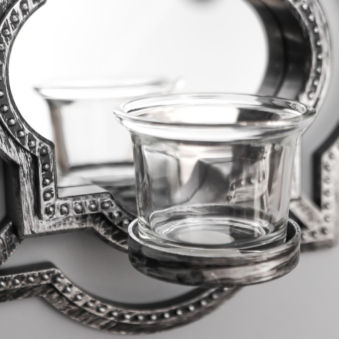 Подсвечник настенный стекло на 1 свечу "Отражение" набор 2 шт d-4 см ст. сереб. 8х20х20,5 см