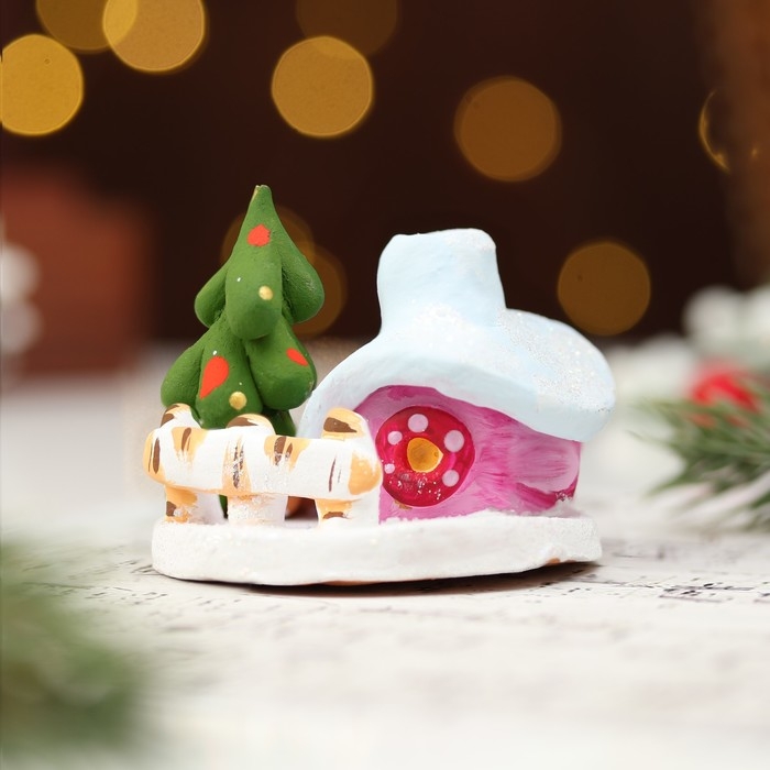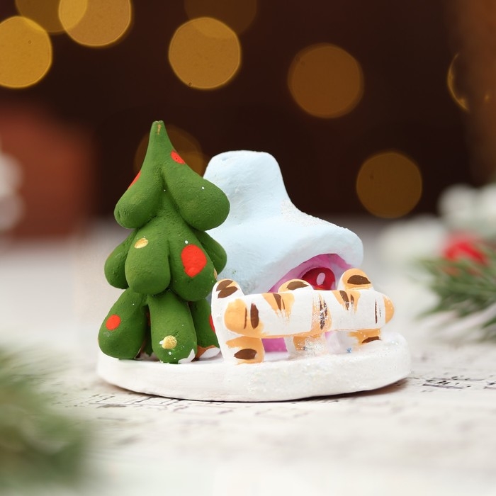 Подсвечник "Новогодняя избушка", ковровская игрушка, керамика