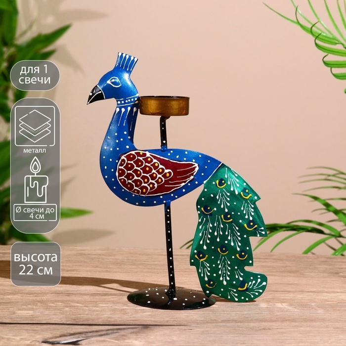 Подсвечник "Павлин" металл 23 см