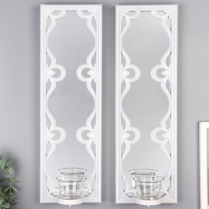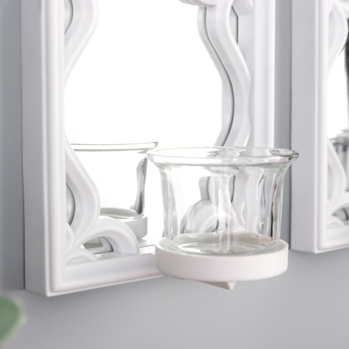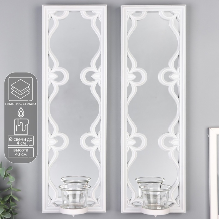 Подсвечник пластик, стекло на 1 свечу "Зеркальные узоры" набор 2 шт d-4 см белая 8х13х40 см 906886