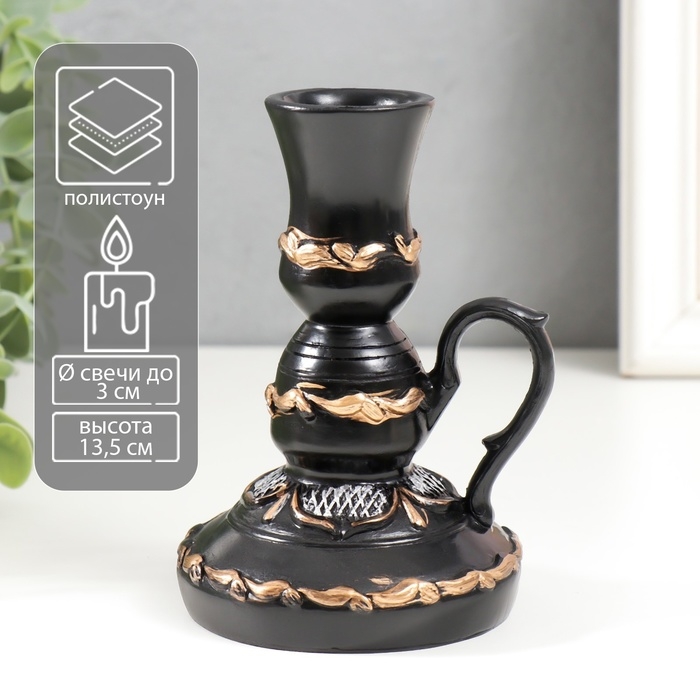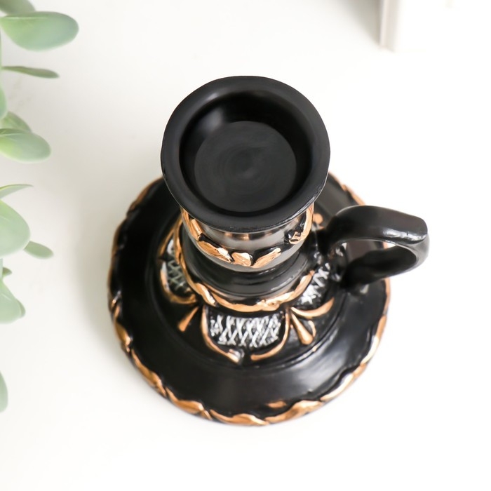 Подсвечник полистоун "Лампа с цветущим узором" d-3 см, чёрный 10х9х13,5 см