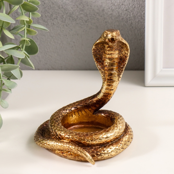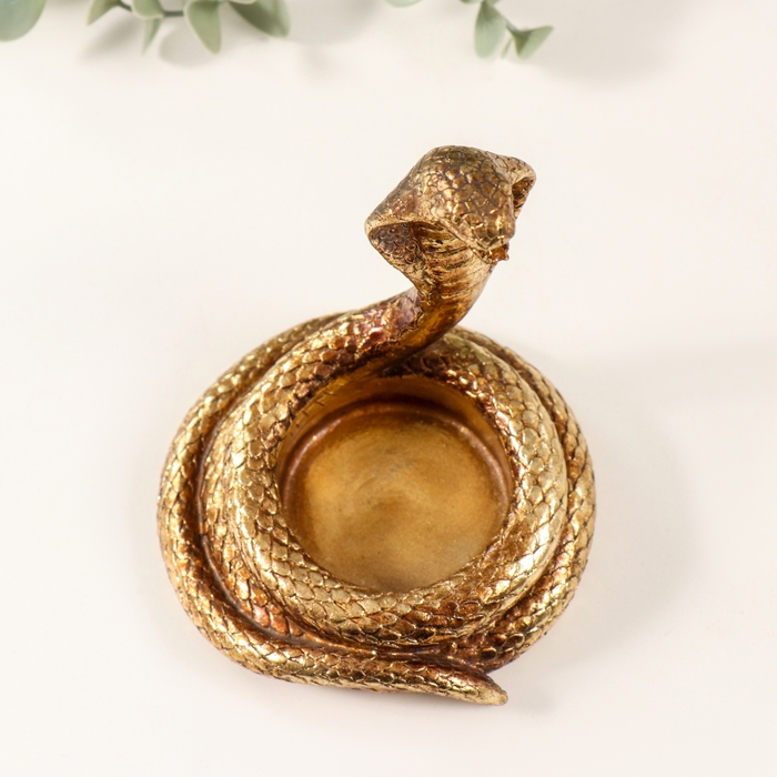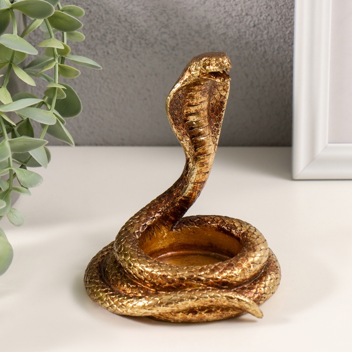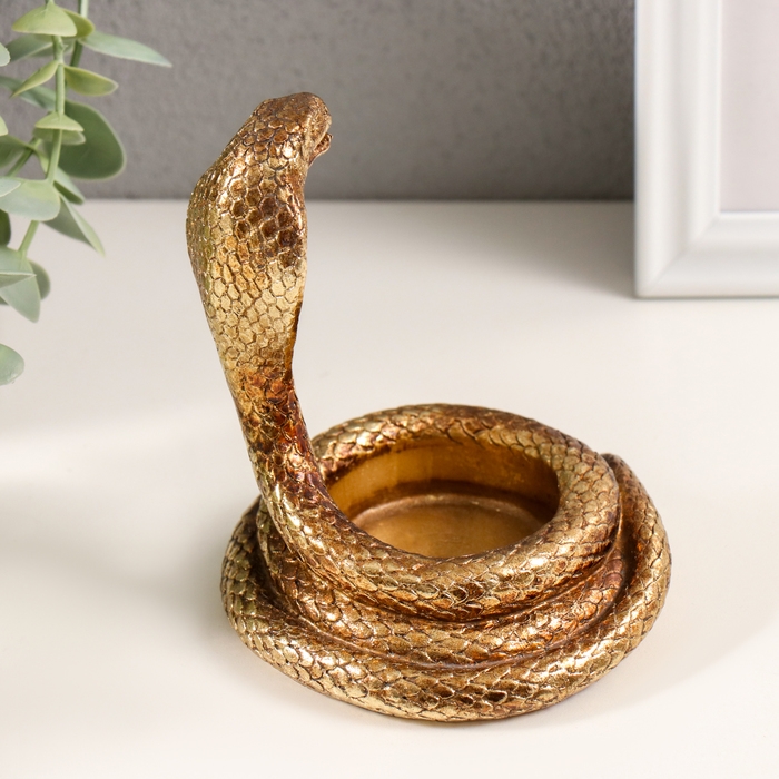 Подсвечник полистоун на 1 свечу "Кобра" золото 9,5х9х10,5 см
