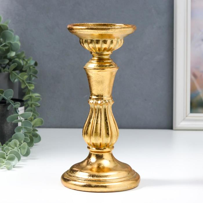 Подсвечник полистоун на 1 свечу "Колонна с воланами" золото 23х12х12 см