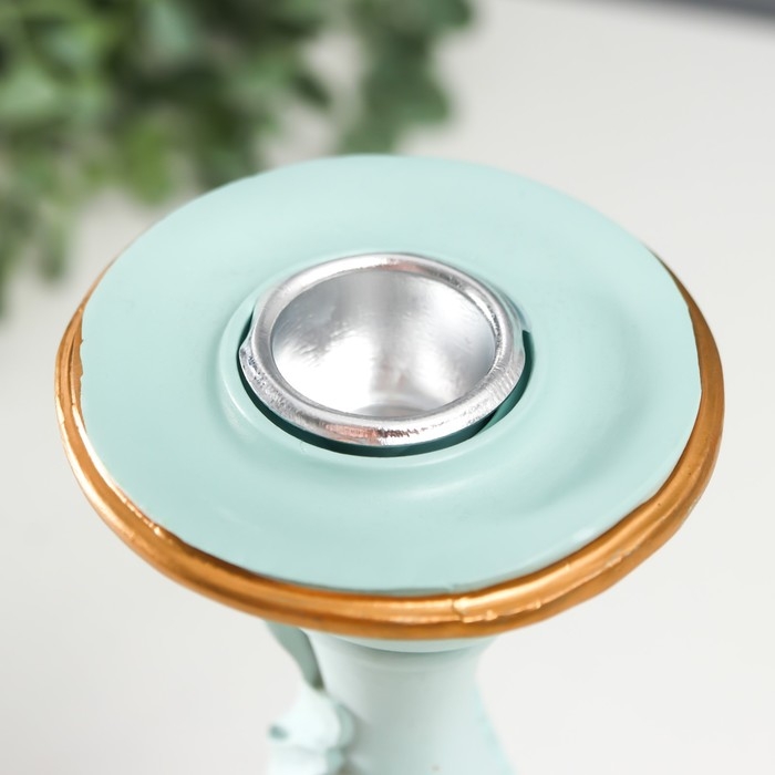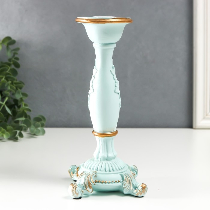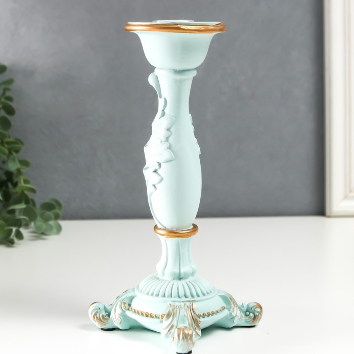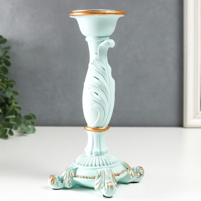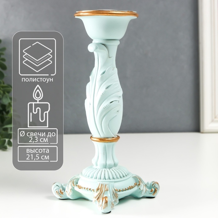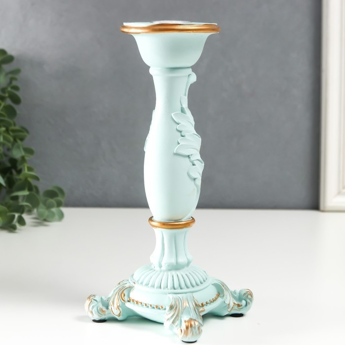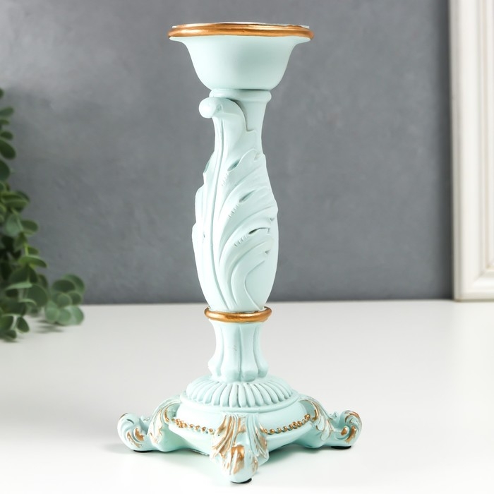Подсвечник полистоун на 1 свечу "Пышный лист" нежно-голубой 21,5х9х9 см