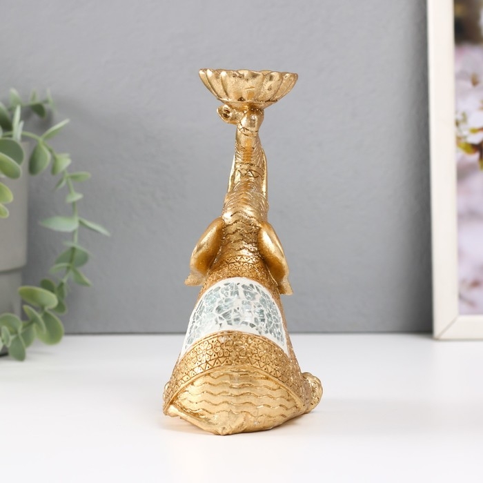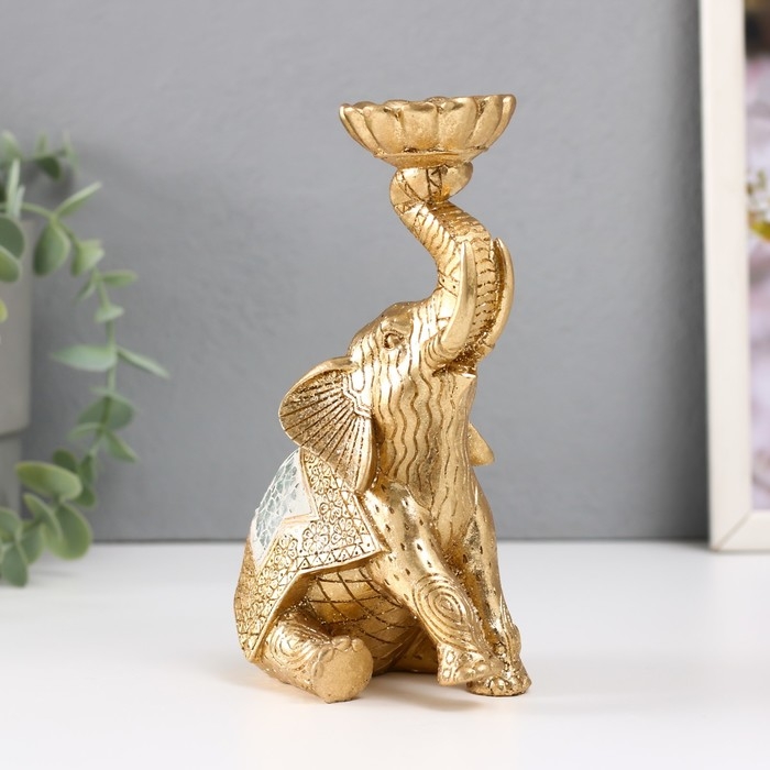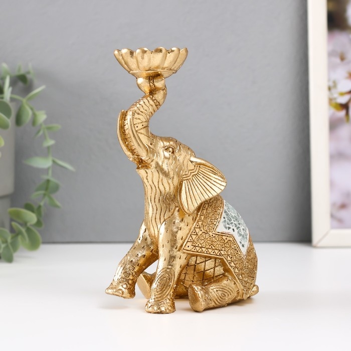 Подсвечник полистоун на 1 свечу "Сидячий слоник с хоботом наверх" 7,5х10,5х16,2 см