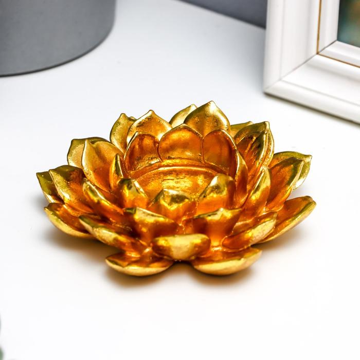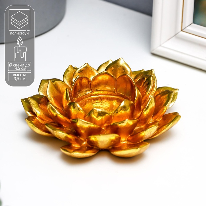 Подсвечник полистоун на 1 свечу "Золотой цветок" 3,5х12х12 см