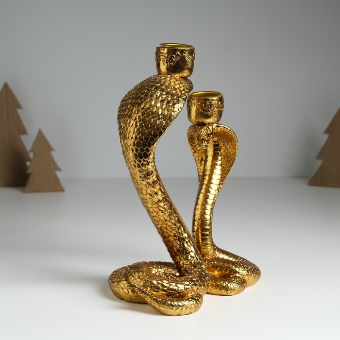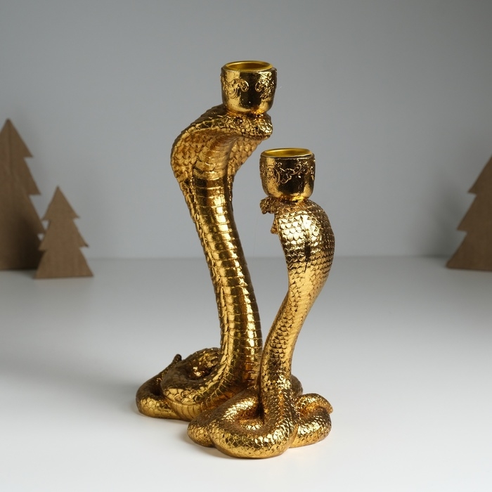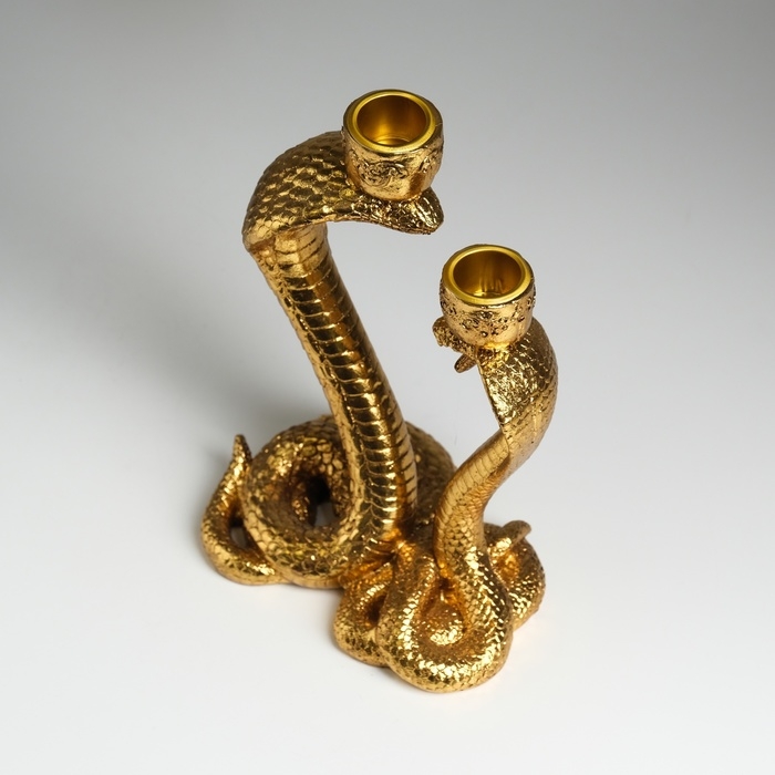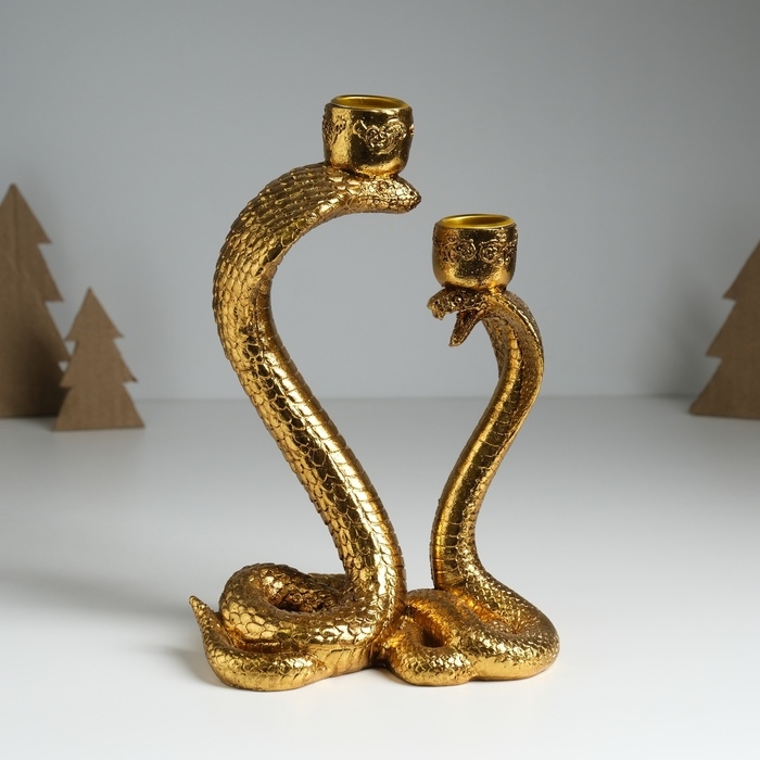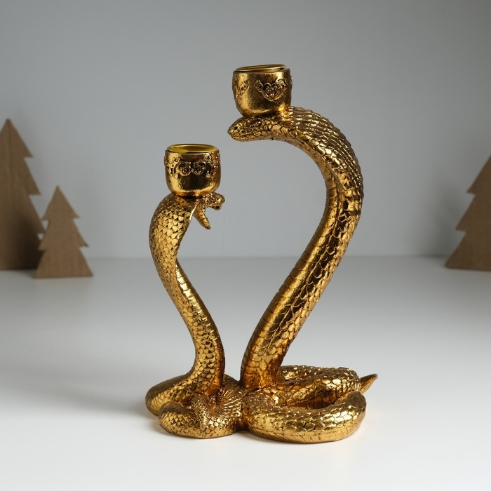 Подсвечник полистоун на 2 свечи "Две королевские кобры" золото 14,5х10,5х21,2 см