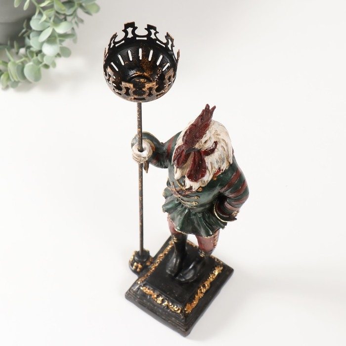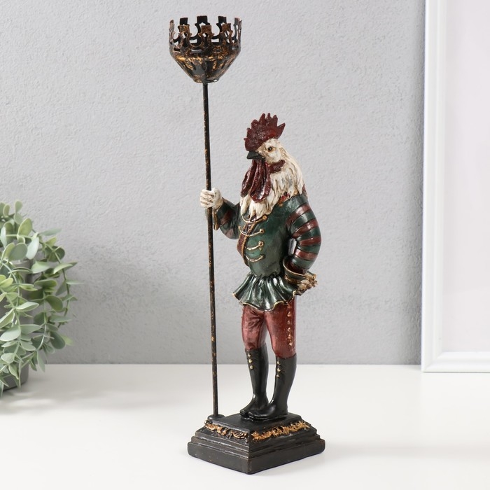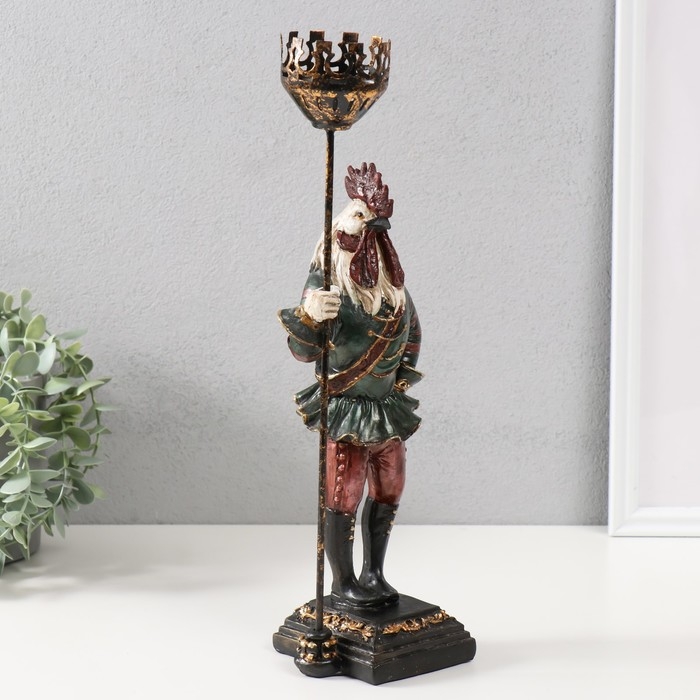 Подсвечник полистоун "Петух в военном камзоле" 12х11х37,5 см