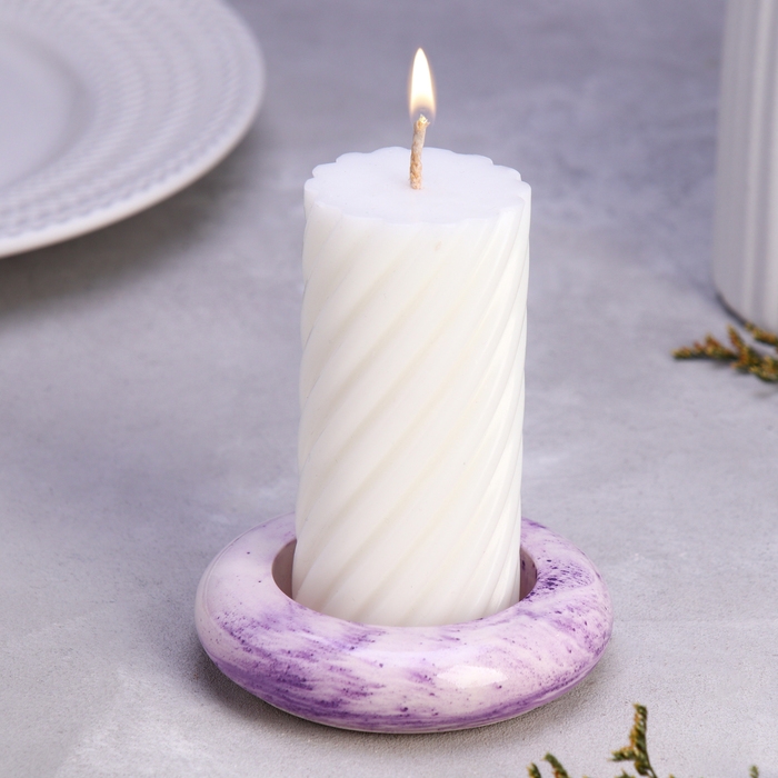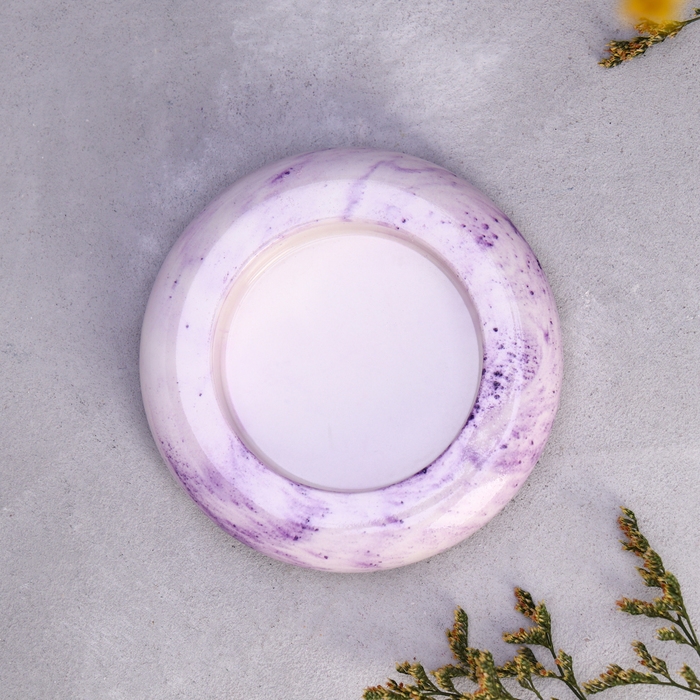 Подсвечник "Полноторие" из гипса малый,9х2,5см,мрамор с фиолетовыми полосками