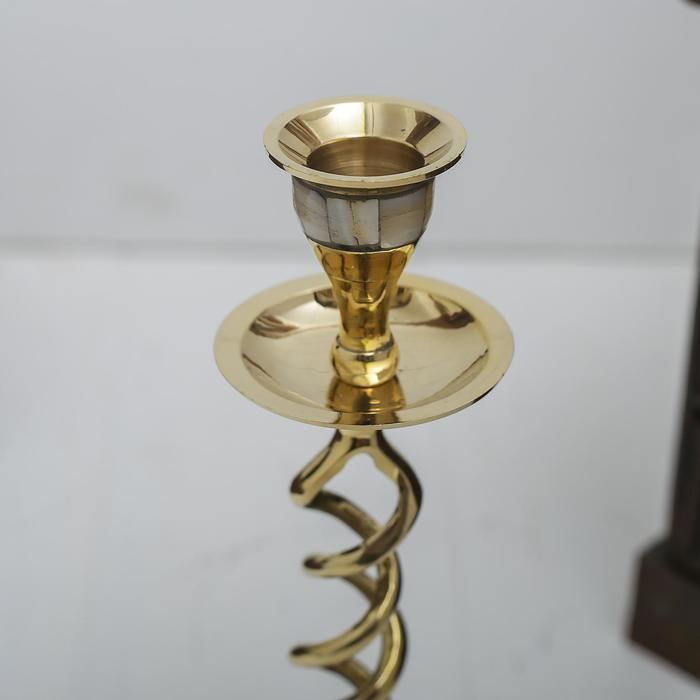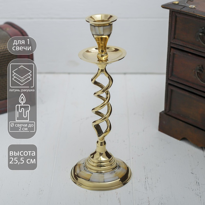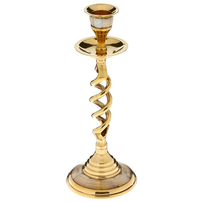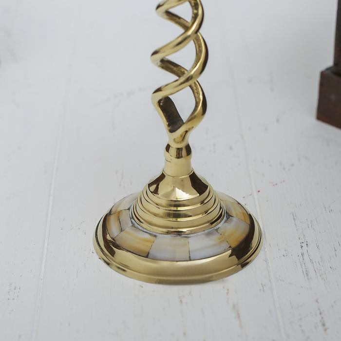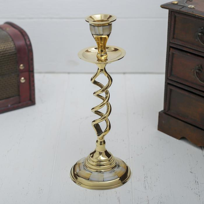 Подсвечник с перламутром "Виражи" на 1 свечу, латунь 7,5х7,5х20,5 см