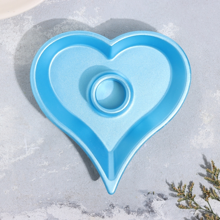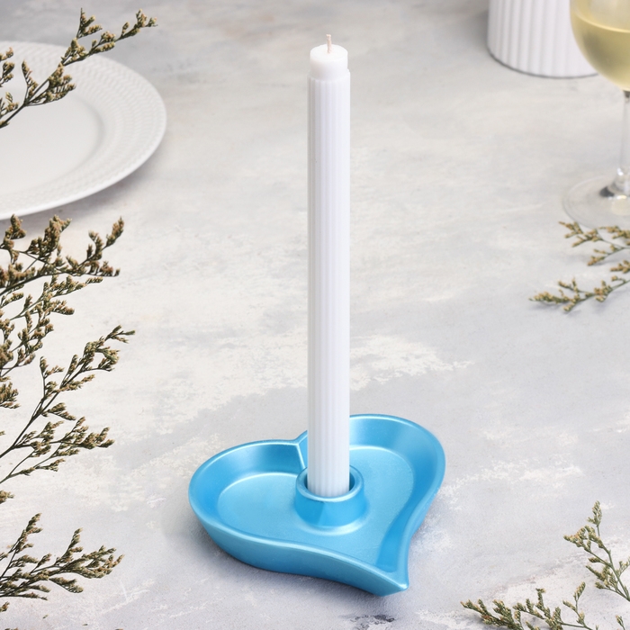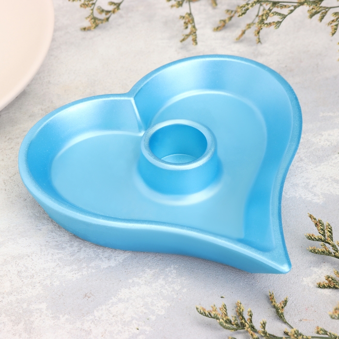 Подсвечник "Сердце" из гипса,14х2,5см,голубой