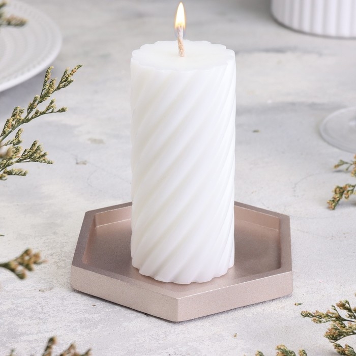 Подсвечник "Шестигранник. Мрамор" из гипса,9,7х11,3х1см,шампань