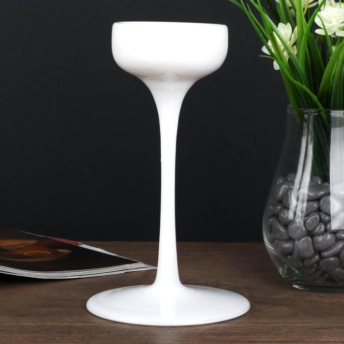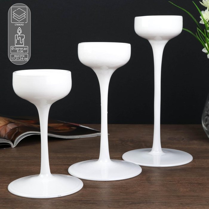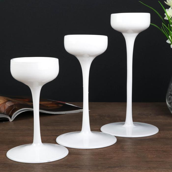 Подсвечник стекло "Бокал-креманка" белый набор 3 шт h- 20, 23, 26х12х12 см