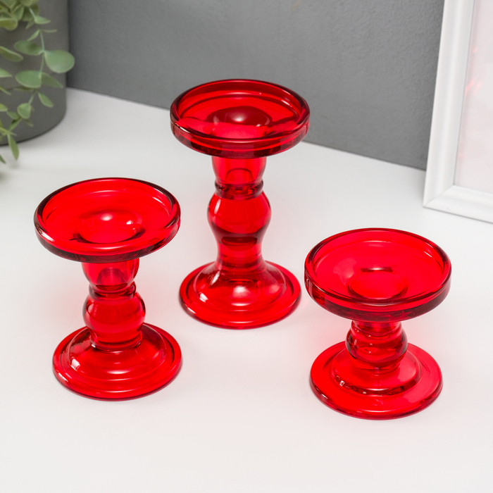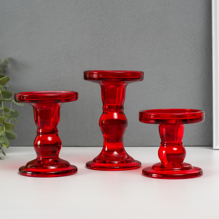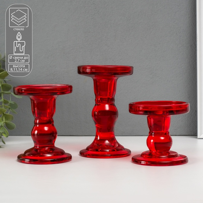 Подсвечник стекло "Креманка" красный набор 3 шт h- 8,5, 11,4, 14х8,5х8,5 см