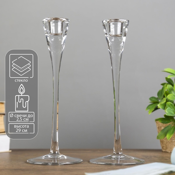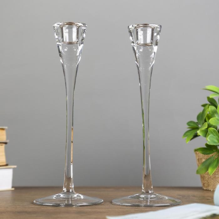 Подсвечник стекло на 1 свечу "Бокал" набор 2 шт прозрачный 29х10,7х10,7 см