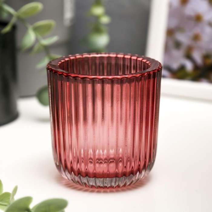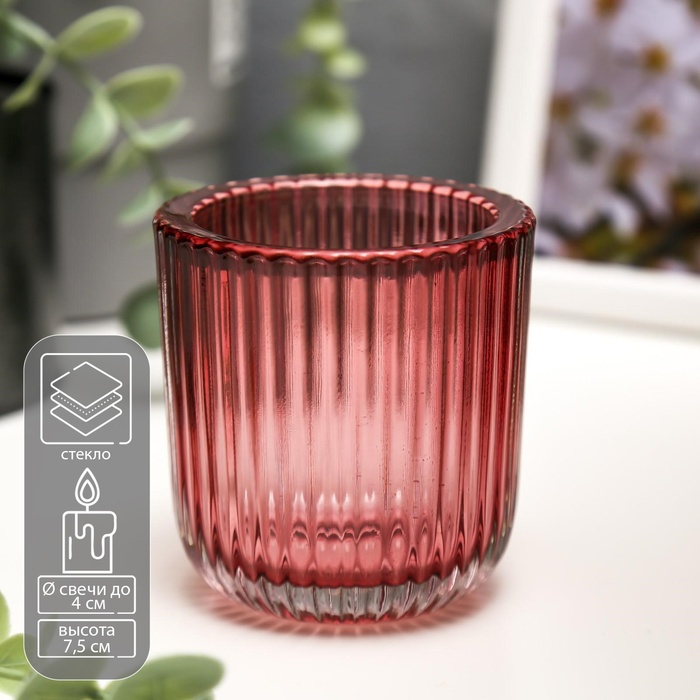 Подсвечник стекло на 1 свечу "Гофре" прозрачный розовый 7,5х7,4х7,4 см