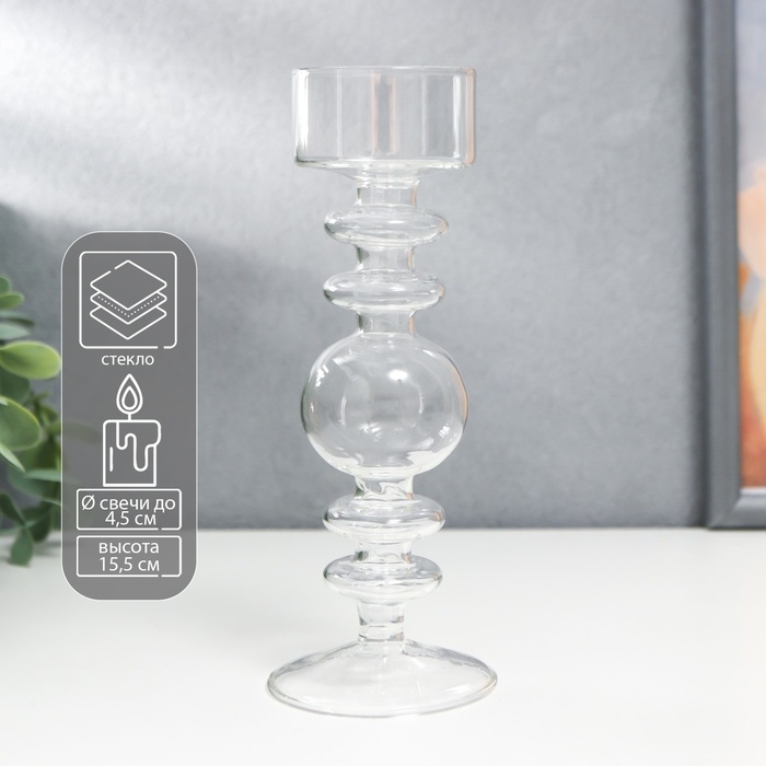 Подсвечник стекло на 1 свечу "Классика. Шар" прозрачный 15,5х6х6 см