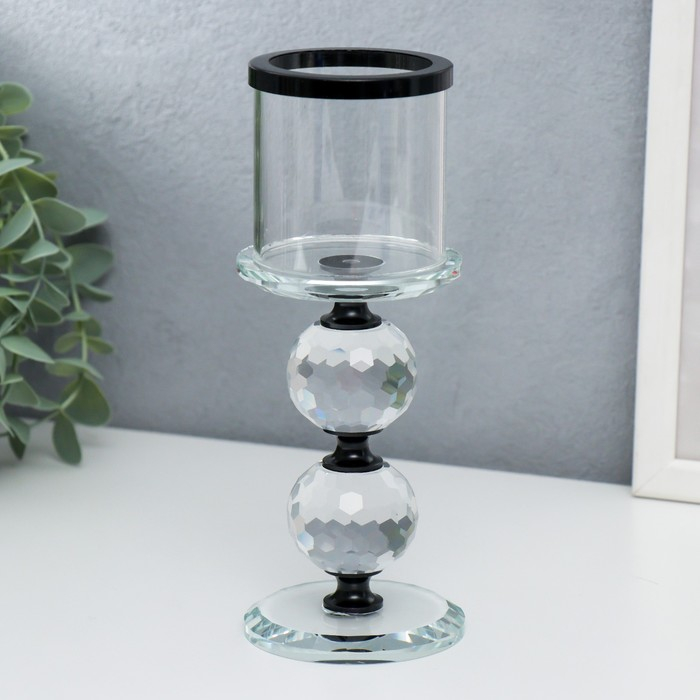 Подсвечник стекло на 1 свечу "Кристалл шар" чёрные вставки 18,3х7х7 см