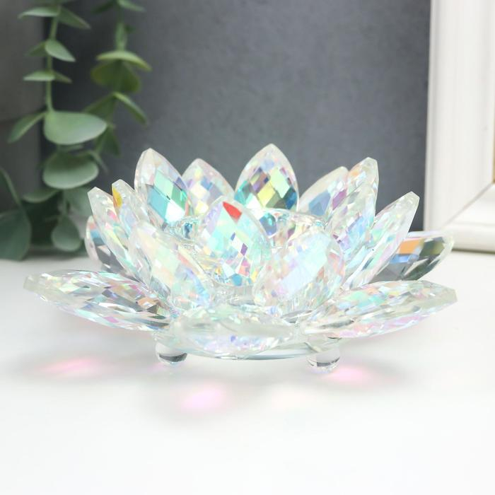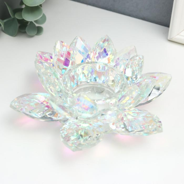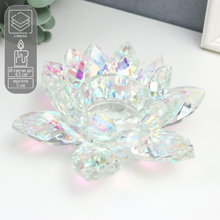 Подсвечник стекло на 1 свечу "Лотос прозрачный с голографией" 5х13,5х13,5 см