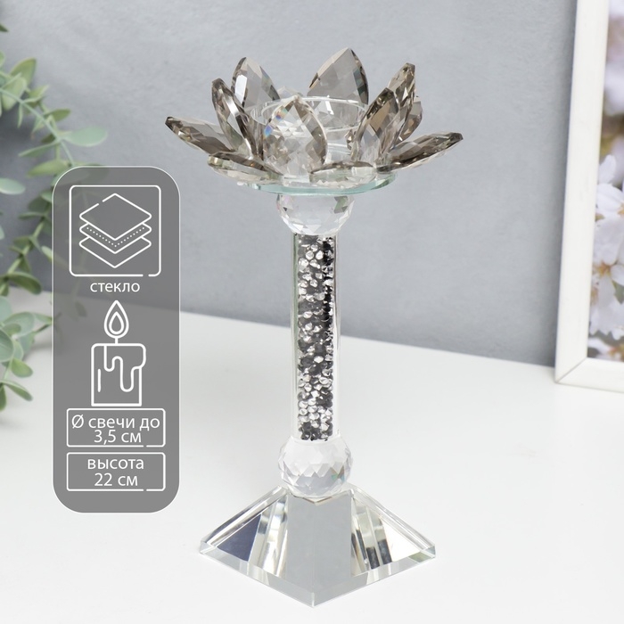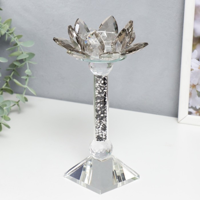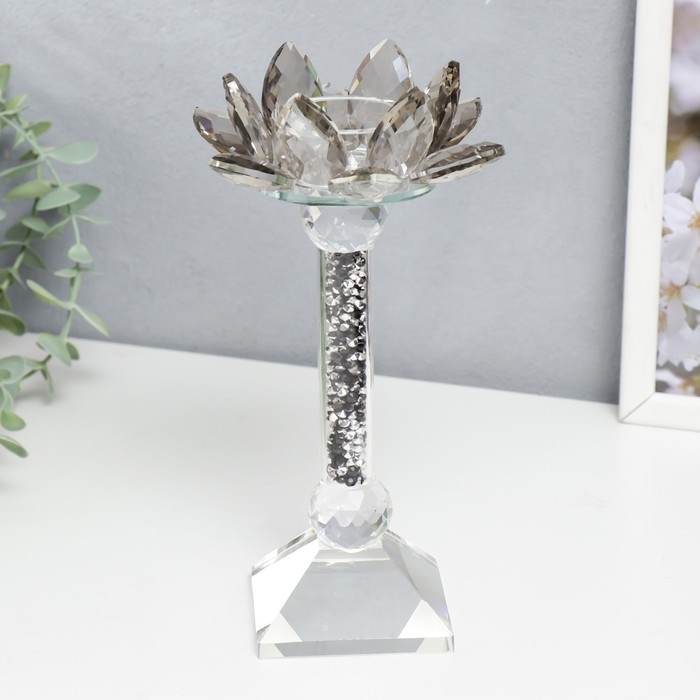 Подсвечник стекло на 1 свечу "Лотос с камешками" 20х12х10,5 см