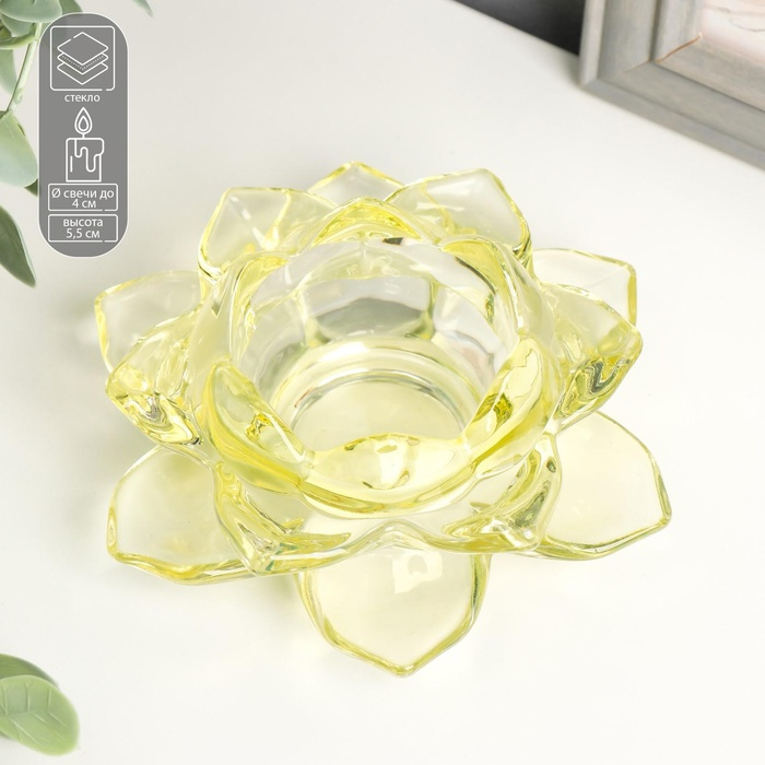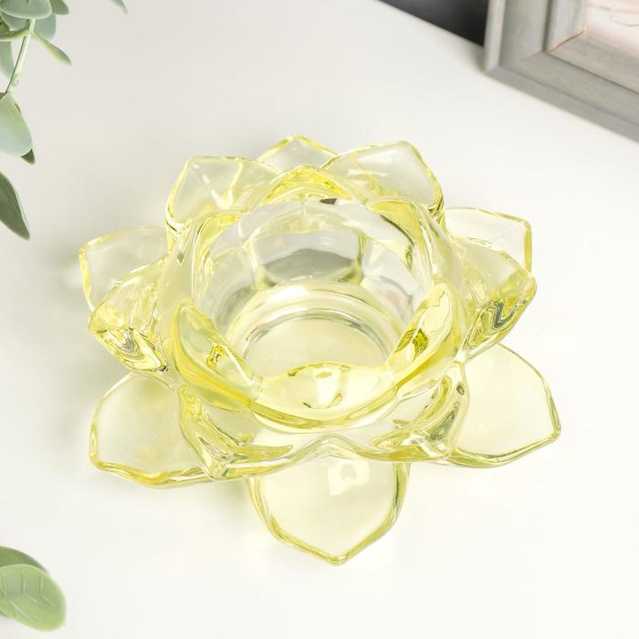 Подсвечник стекло на 1 свечу "Лотос" жёлтый 5,5х12х12 см